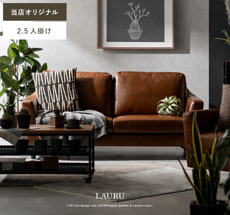 2.5Pデザインソファ LAURU(ラウル)レザーの商品ページです。座るたびに心地よさを実感できる極厚ウレタン入りの6層構造、合わせ易いスタンダードデザインが人気のソファです。