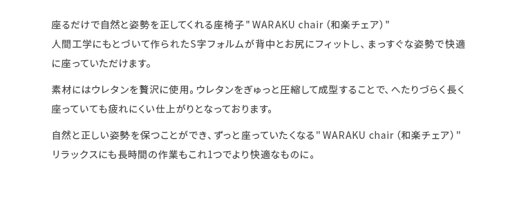 自然と正しい姿勢を保て、ずっと座っていたくなる"WARAKU chair(和楽チェア)"