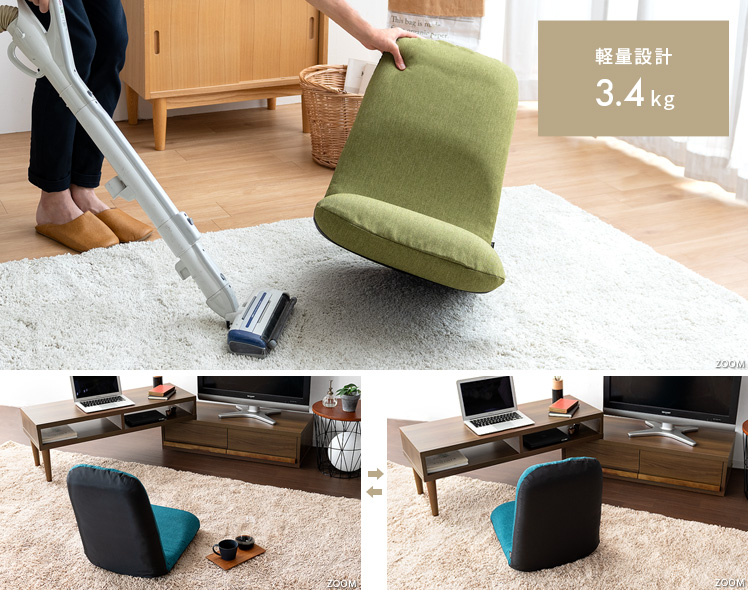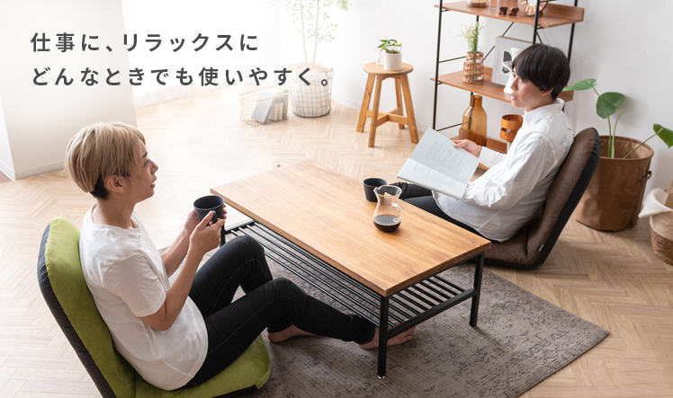 テレビの前からテーブルの前へと、お部屋の中でのこまめな移動もラクラク。お部屋のどこででも快適に座っていただけます。