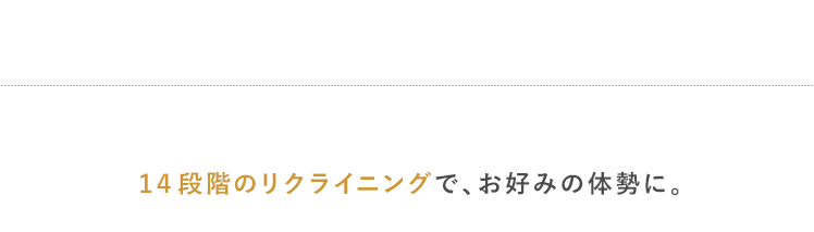 ちょっとお昼寝したいときにはフラットに倒して、ベッドのように心地よくお休みいただけます。