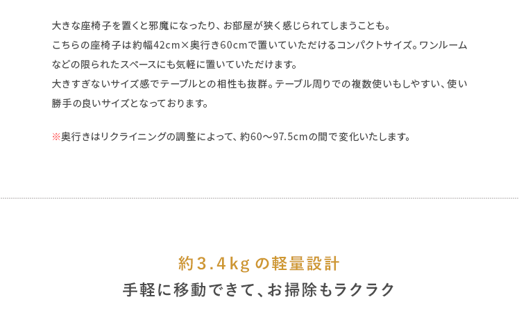 ワンルームにも置きやすい、幅42cmのコンパクトサイズ