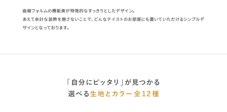 余計な装飾を施さないことで、どんなテイストのお部屋にも置けるシンプルデザインに。
