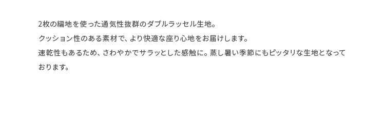 2枚の編地を使った通気性抜群のダブルラッセル生地。