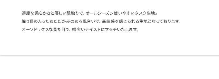 適度な柔らかさと優しい肌触りで、オールシーズン使いやすいタスク生地。