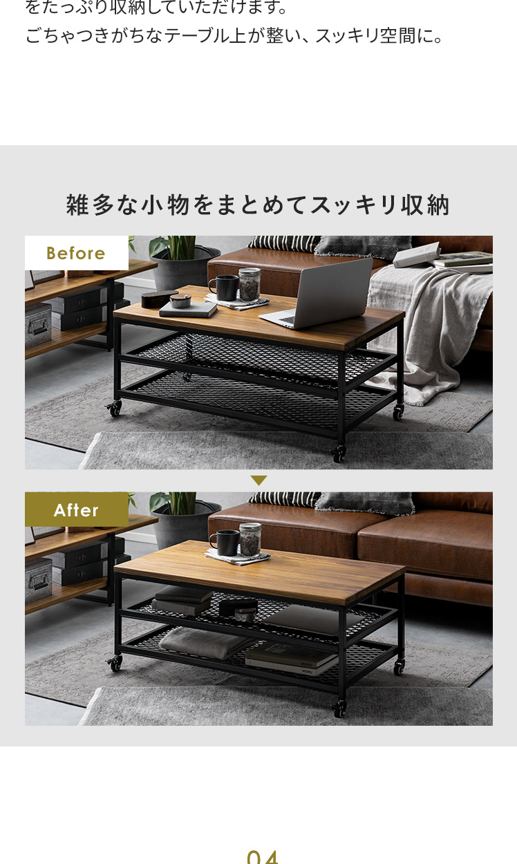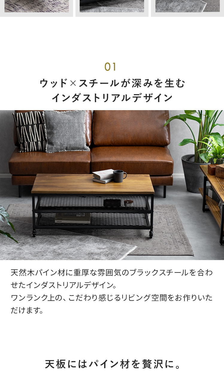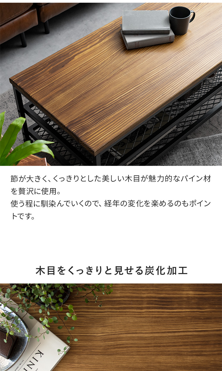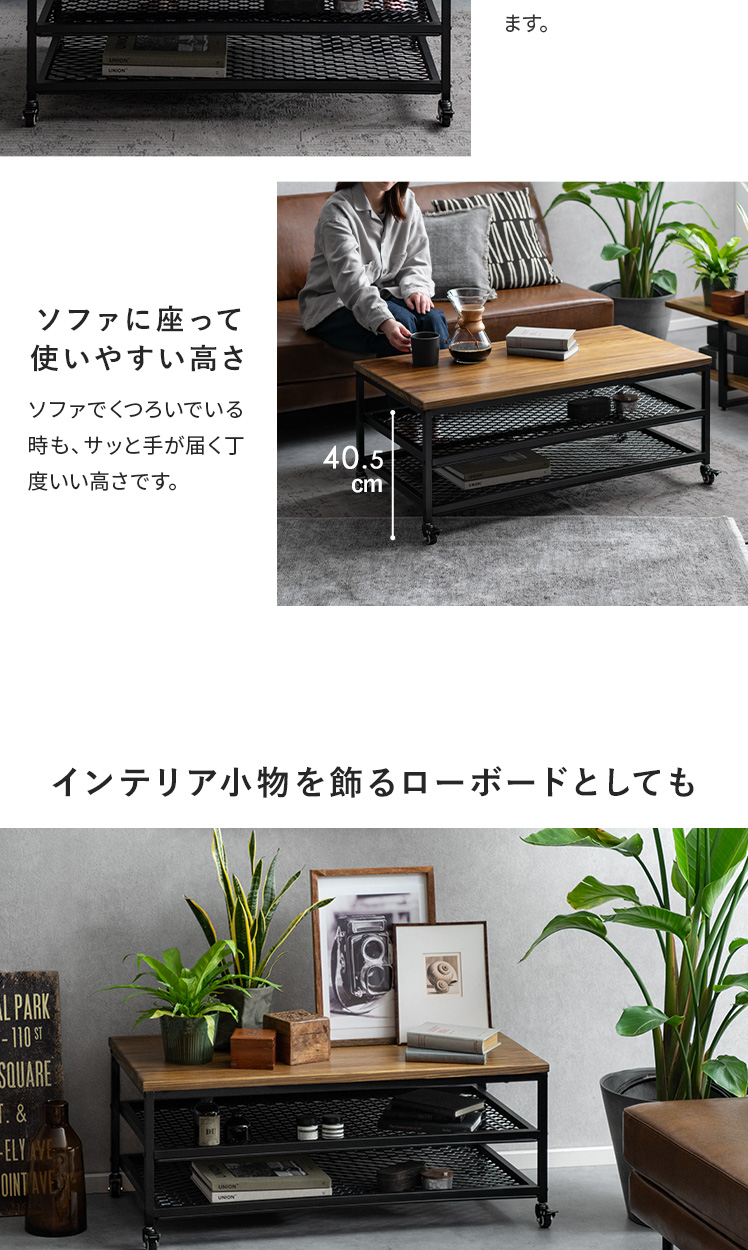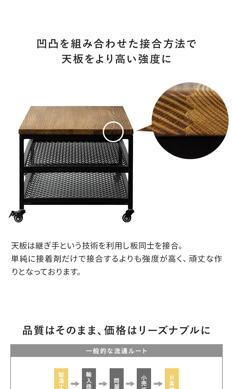 キャスター付きヴィンテージウッドテーブル Lewis〔ルイス〕 /風合いある天然木とブラックスチールのインダストリアルデザイン。ワイヤーメッシュが重厚な中に抜け感を演出します。キャスター付きだからサッとテーブルを動かして、お部屋に広々とした空間をお作りいただけます。