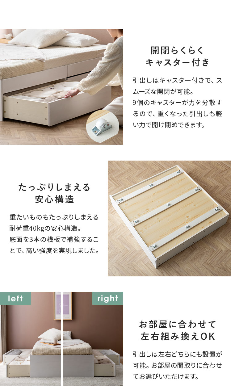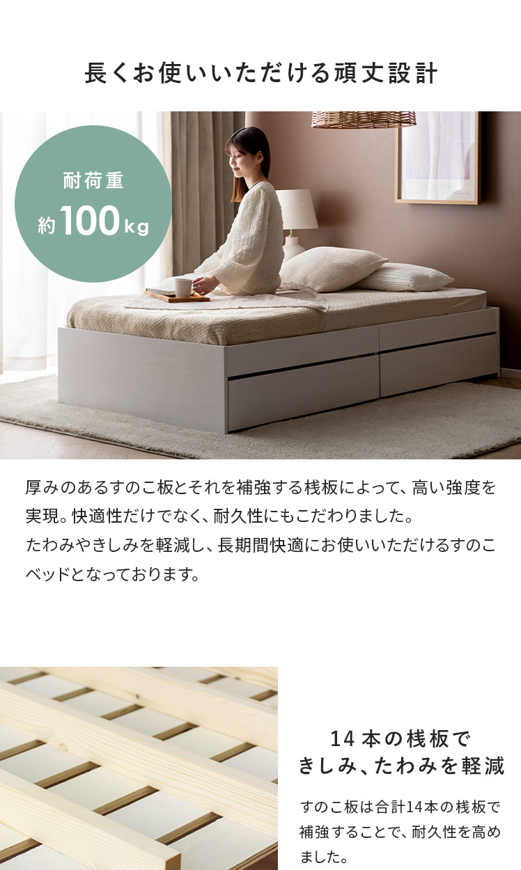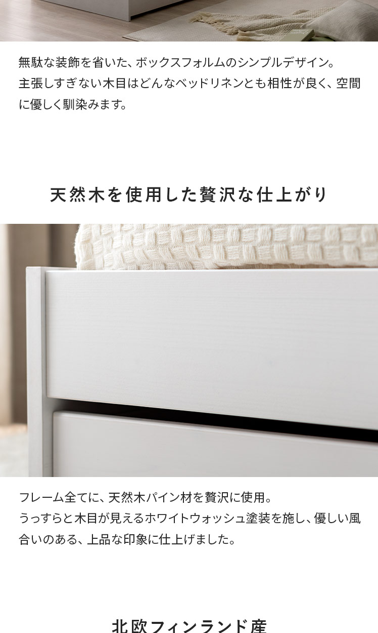 天然木 木製 ベッドフレームのみ シンプル モダン ウッド パイン材 ベッド下収納 シングル シングルベッド 収納付き 引き出し付き チェストベッド 収納ベッド 白 ナチュラル ホワイト【5%OFFクーポン対象|公式なら毎日お得】