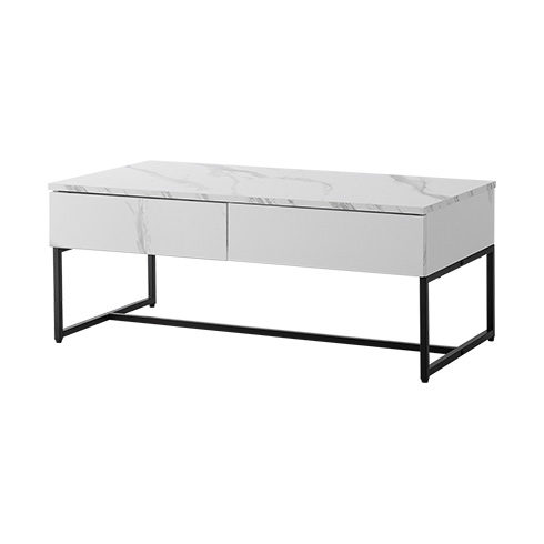 引き出し付きセンターテーブル LUMOA〔ルモア〕/デザイン性と収納力を兼ね備えたテーブル“LUMOA(ルモア)”リアルな大理石調とブラックスチールが高級感のある空間を演出。また、大容量の2杯の引き出し付きで、スッキリと整ったホテルライクなリビング空間をお作りいただけます。