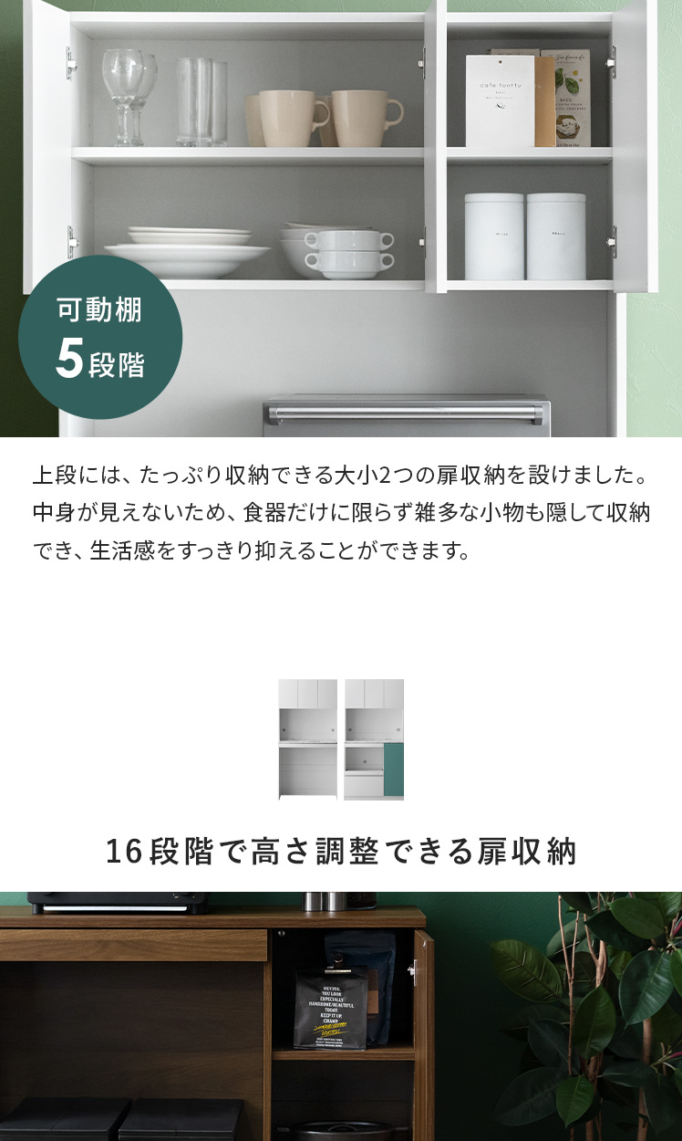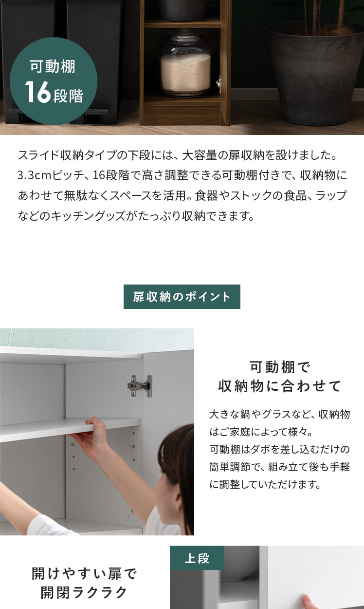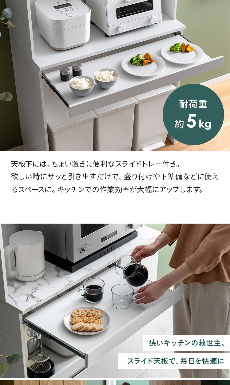 食器棚 スライドトレー付き 可働棚 キッチンラック キッチンキャビネット