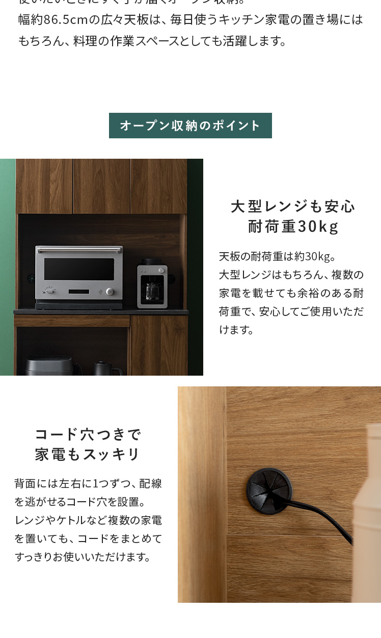 | オープン収納サイズ | 約幅86.5×奥行き41.3×高さ49.5cm |