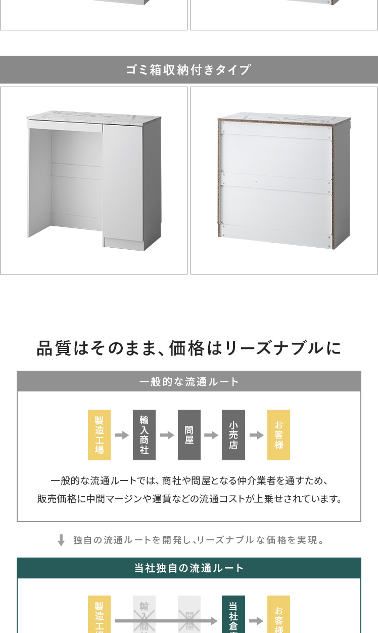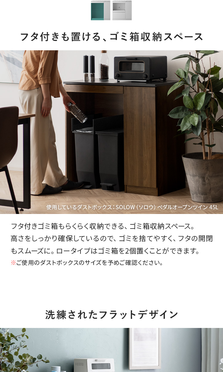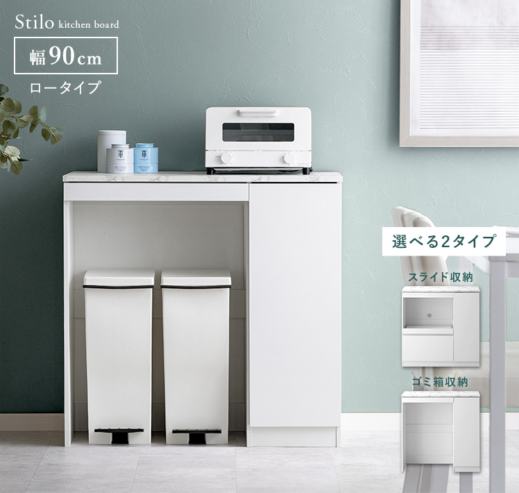 [幅90] ゴミ箱収納付きキッチンボード Stilo〔スティロ〕 ロータイプ