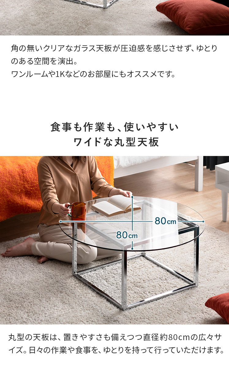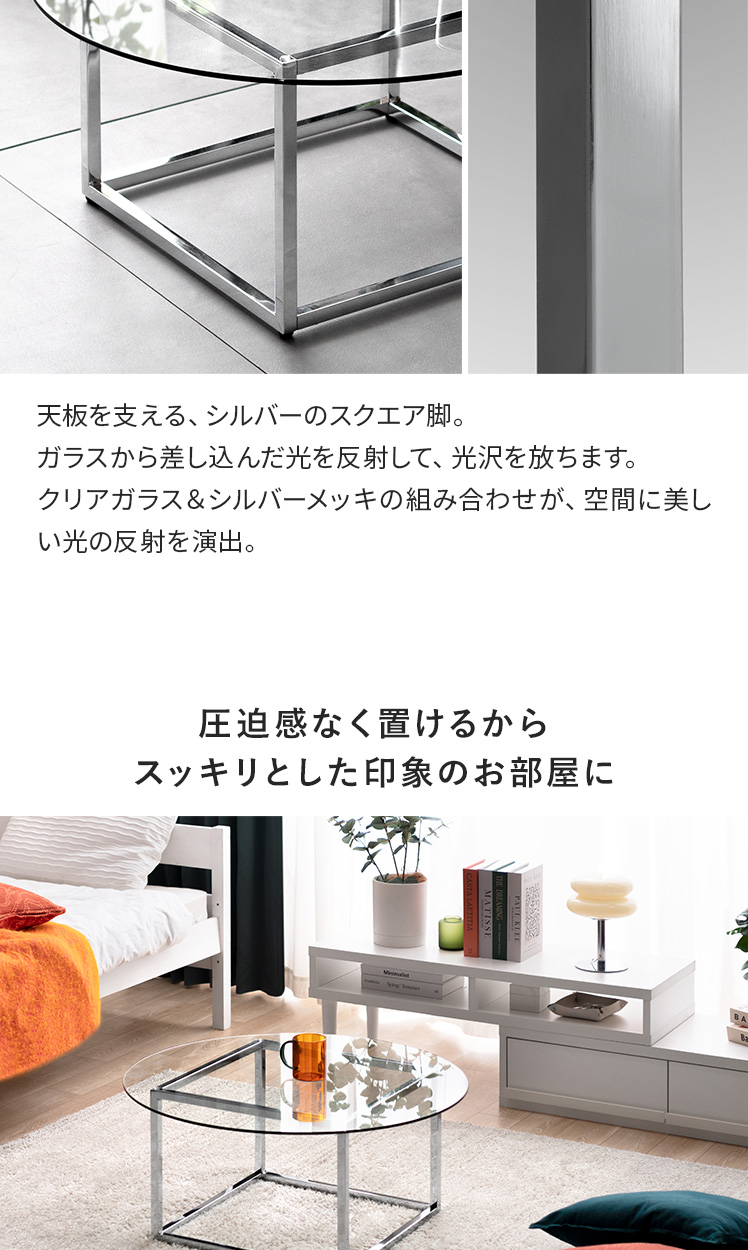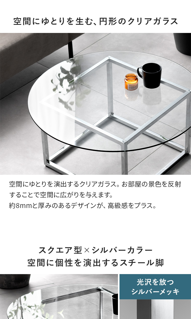 リビングテーブル センターテーブル コーヒーテーブル ガラステーブル ミッドセンチュリー シンプル モダン ローテーブル シルバーメッキ 丸形 円形 おしゃれ 北欧 クリア【5%OFFクーポン対象|公式なら毎日お得】