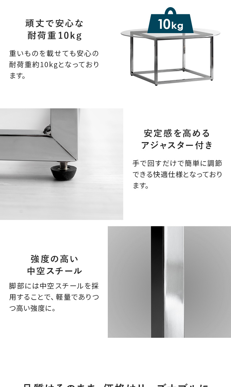 | 素材 | 強化ガラス、スチール(クロムメッキ加工) |