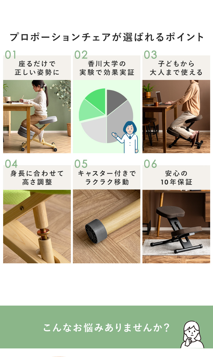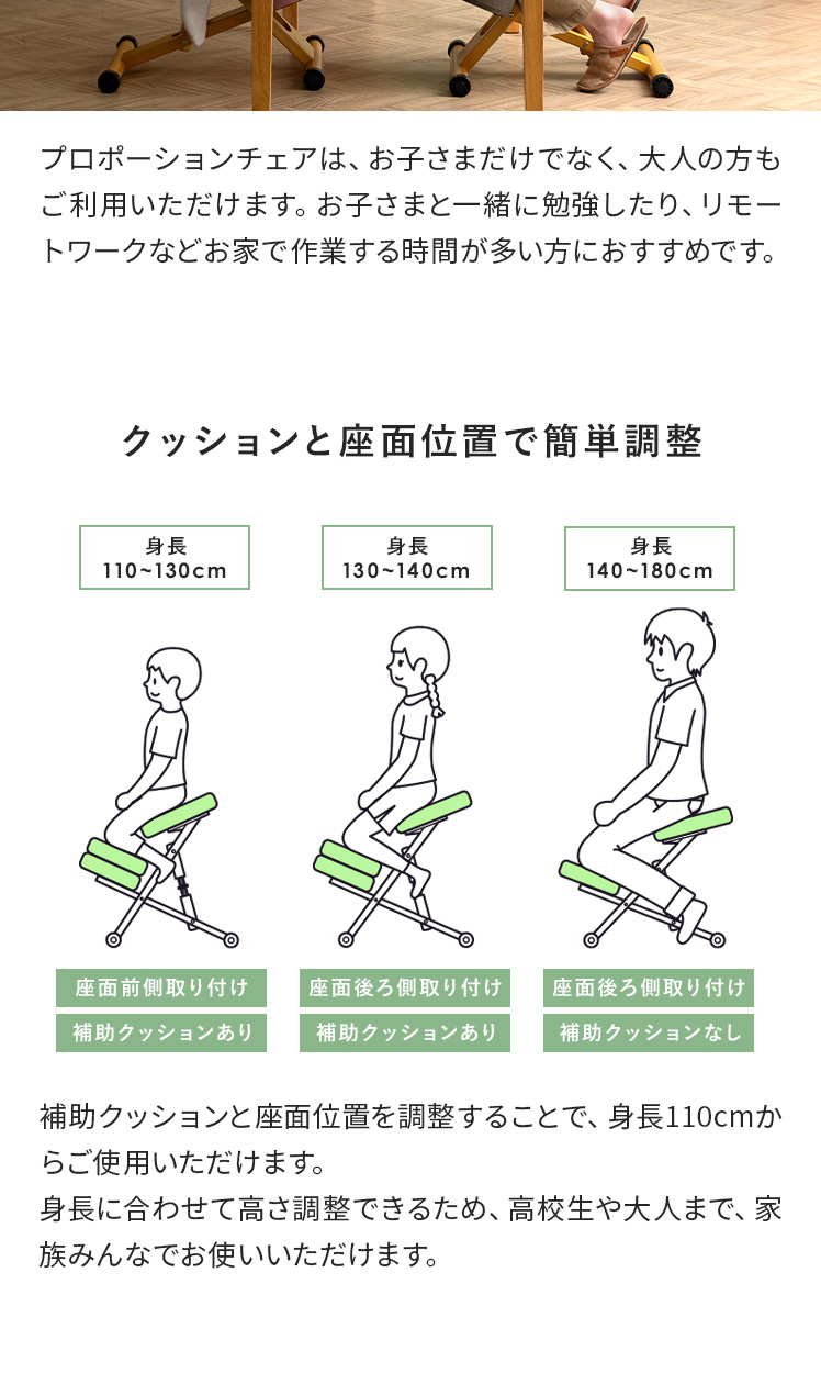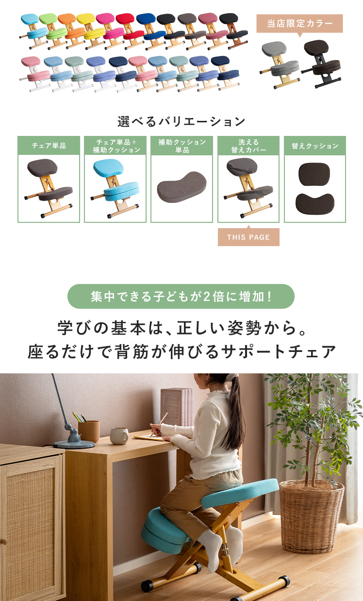 プロポーションチェア 替えカバー3枚セット/座るだけで自然と姿勢が整うプロポーションチェア。姿勢がよくなることで集中力が高まり、お子さまの勉強の質がアップ。高さ調整可能で、お子さまから大人までお使いいただけます。姿勢を改善して、いつもの勉強時間をより効果の高いものに。