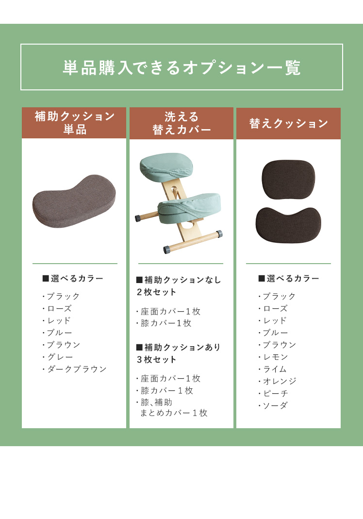 | セット内容 | 座面カバー、膝カバー、膝・補助まとめカバー |