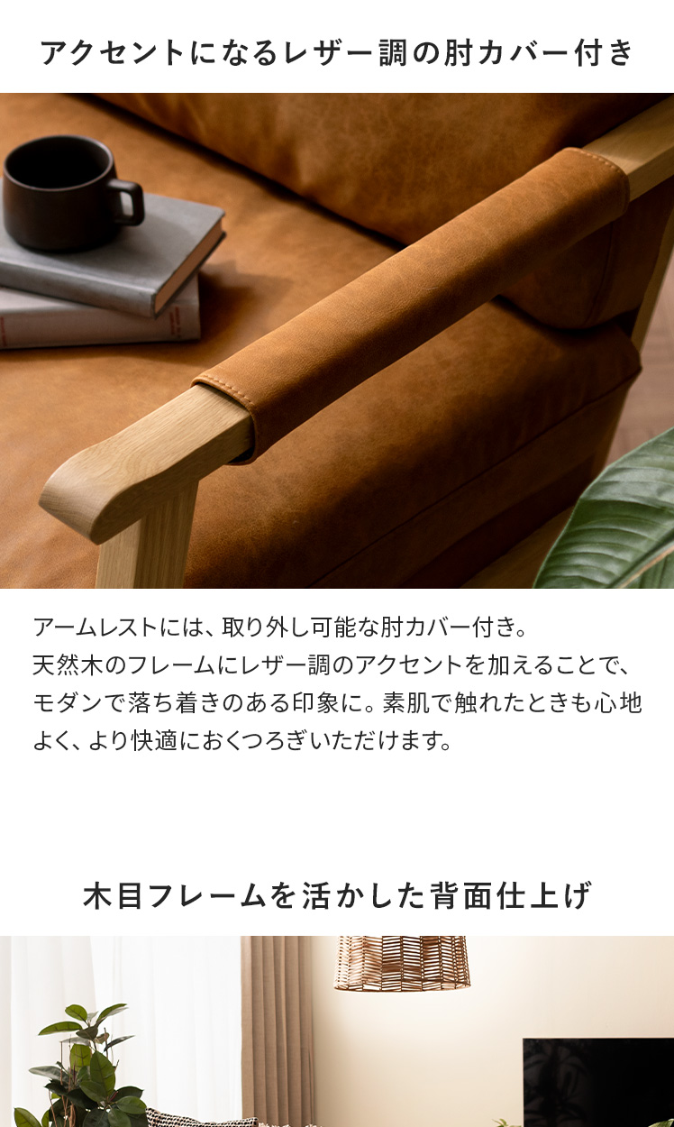 【開梱設置付きサービス付き】アームソファ ローバック レザー ウッド レザーファブリック ソファー 2人掛け 2Pソファ フェザー 北欧 フェザーソファ おしゃれ かわいい かっこいい ウレタン カフェ 家具 ふかふか ヴィンテージ ミッドセンチュリー ナチュラル シンプル ブラウン キャメル【5%OFFクーポン対象|公式なら毎日お得】