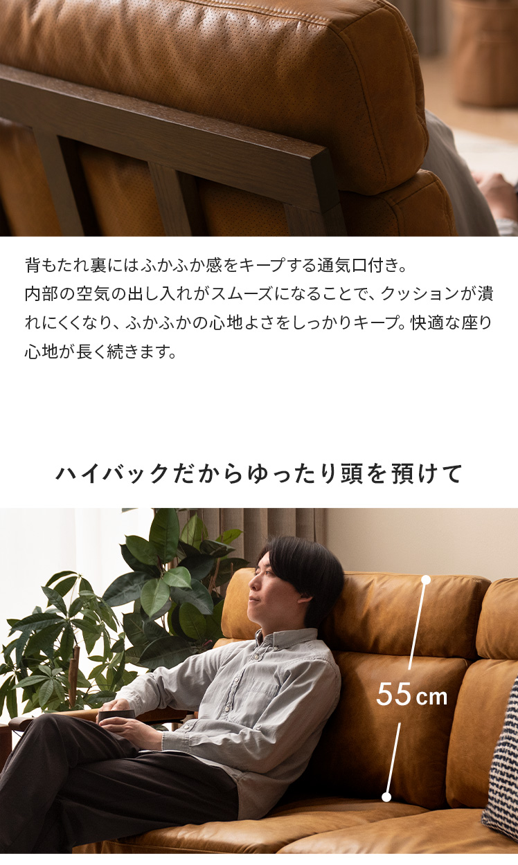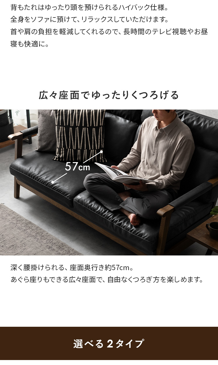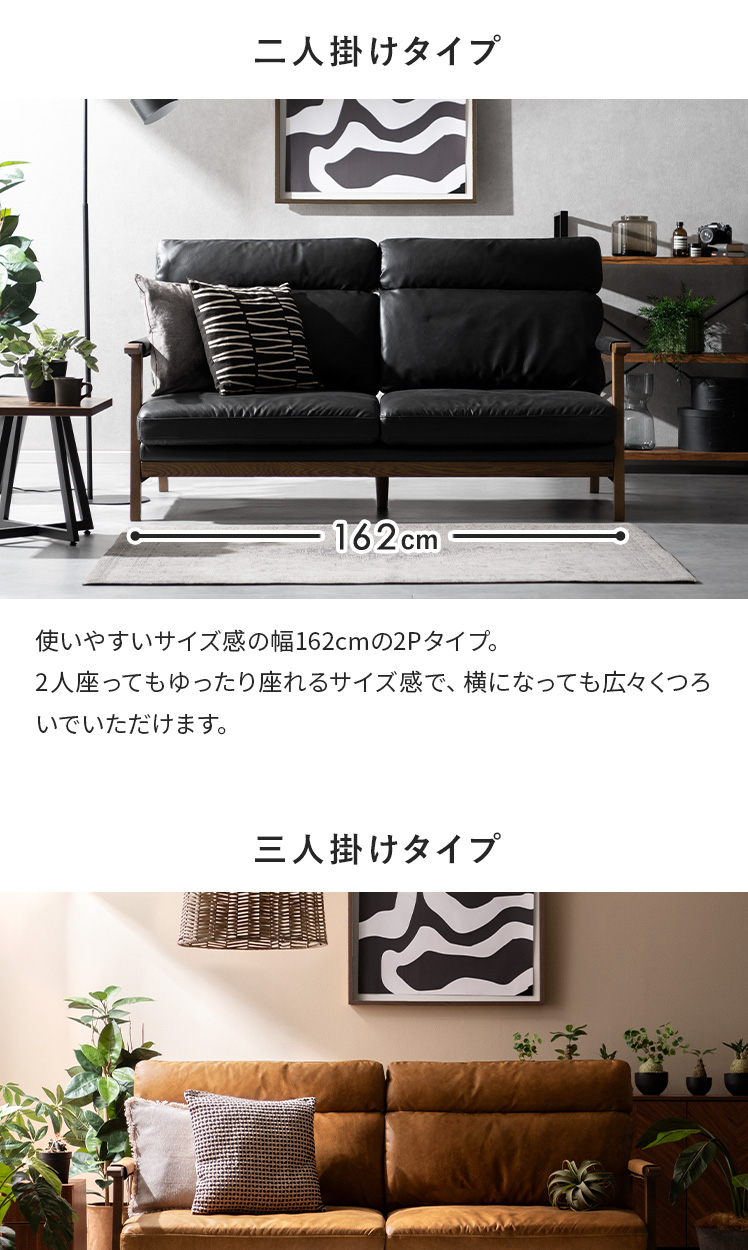 【開梱設置付きサービス付き】2人掛け ヘッドレスト付き ウッド おしゃれ かわいい かっこいい ウレタン カフェ風 ヴィンテージ調 ミッドセンチュリー ナチュラル シンプル ブラウン キャメル ブラック【公式限定|いつでも3%OFFクーポン対象】