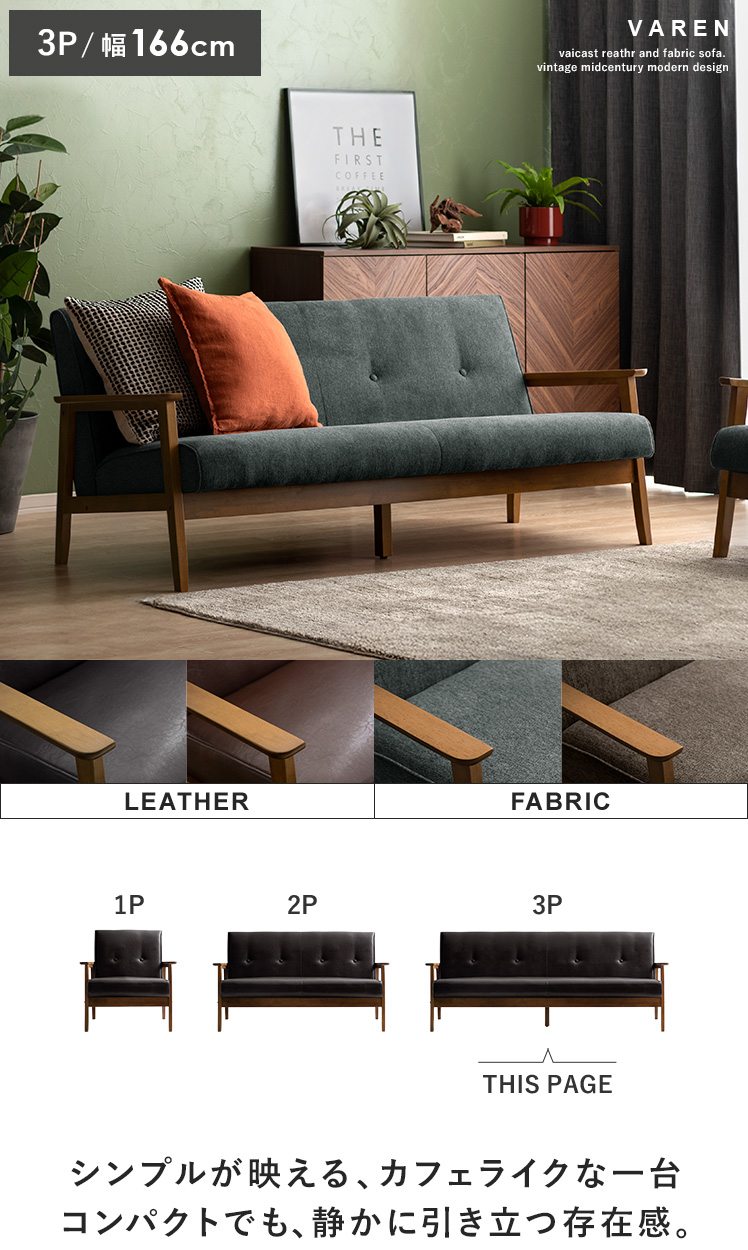 [幅166] シンプルソファ VAREN〔ヴァレン〕3Pサイズ