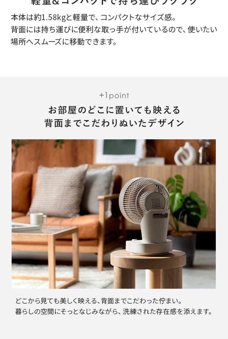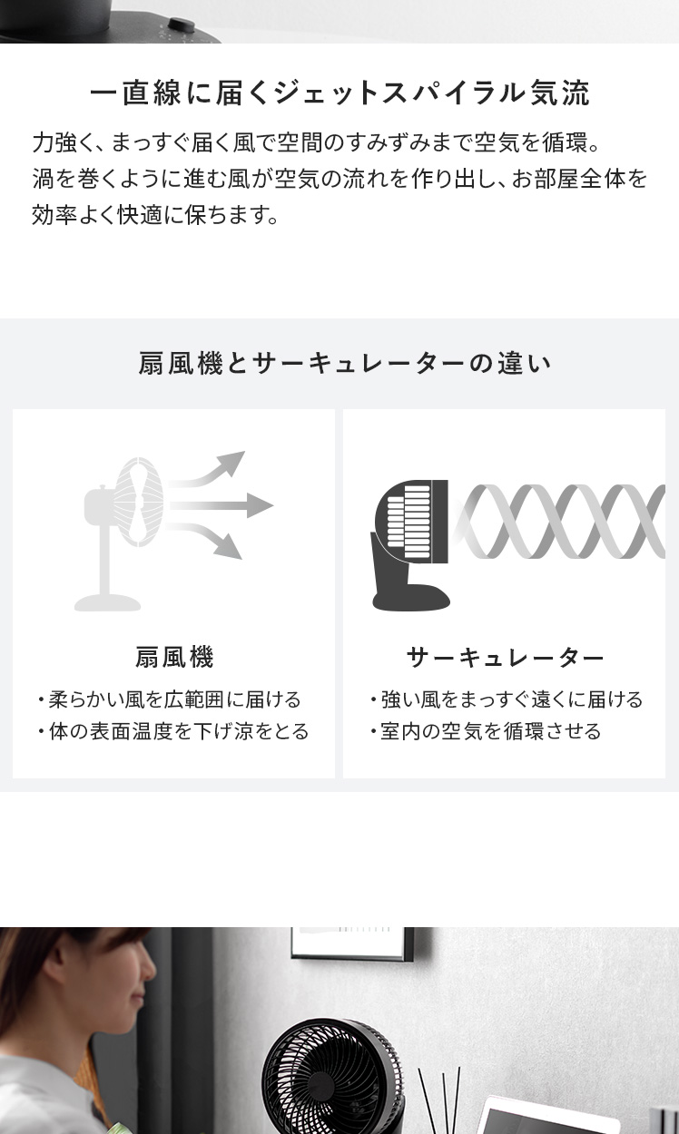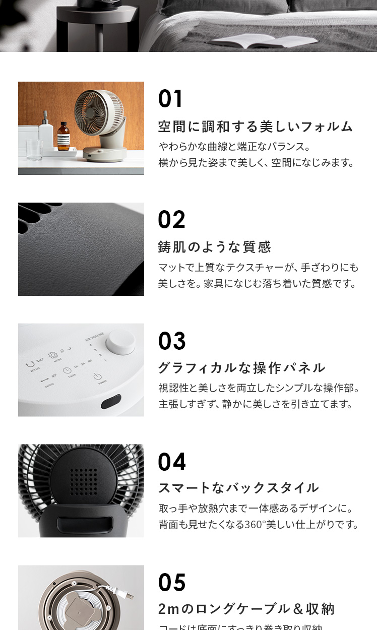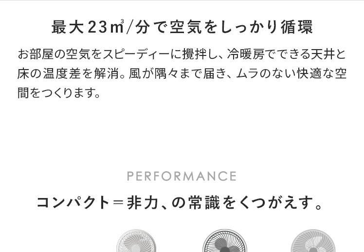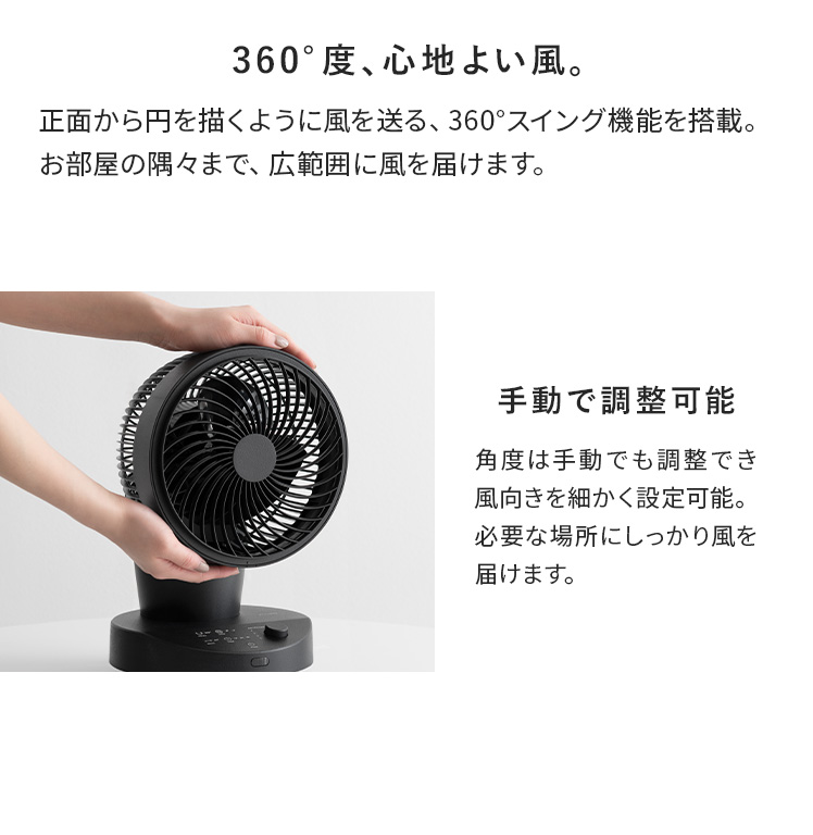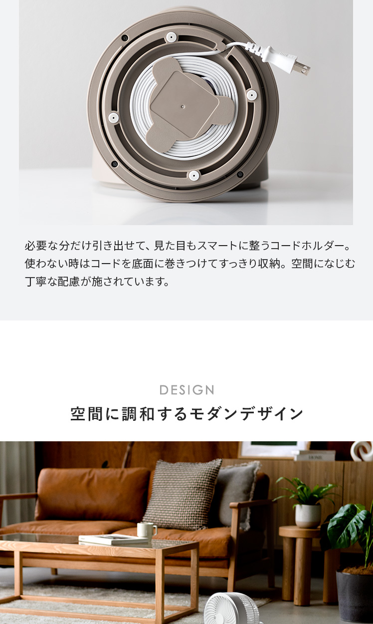 ALTINOR〔アルティノル〕 360°サーキュレーター/上質なデザインと高い機能性を兼ね備えた、インテリア発想のサーキュレーター。静音性と省エネ性に優れたDCモーターを搭載し、優れた送風性能で換気や衣類乾燥にも活躍。2mのロングコードや感覚的に操作できるダイヤルなど、使いやすさにもこだわりました。機能も美しさも妥協せず仕上げた一台が、季節を問わず心地よい空気を届けます。