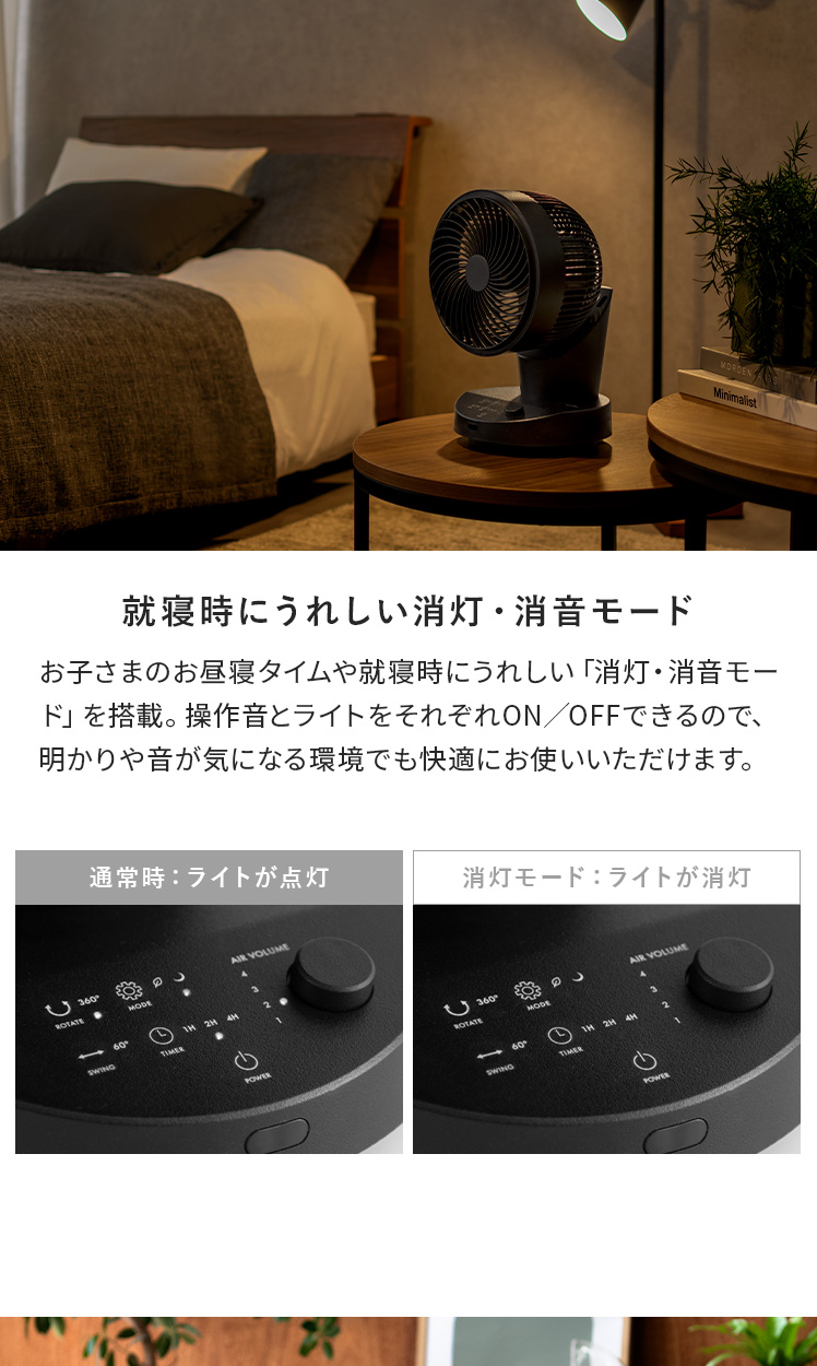 静音 全分解OK DCモーター 10段階風量調整 リモコンつき 360度スイング パワフル送風 お手入れ簡単
