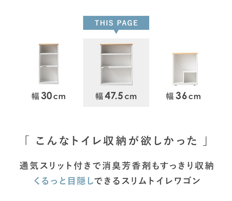 [幅47.5] キャスター付きトイレワゴン Laurie〔ローリー〕ワイドタイプ