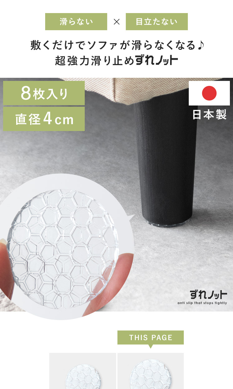 ずれノット 4cmタイプ/ソファが滑るのってストレスですよね・・・でも大丈夫♪当店オリジナルのずれノットなら敷くだけで簡単にソファがピタッと止まります!“ずれノット”なら、敷くだけで簡単にソファのストレスを解消!もたれても、お子様が飛び乗ってもソファがずれないから、もっと快適にソファでくつろげます。