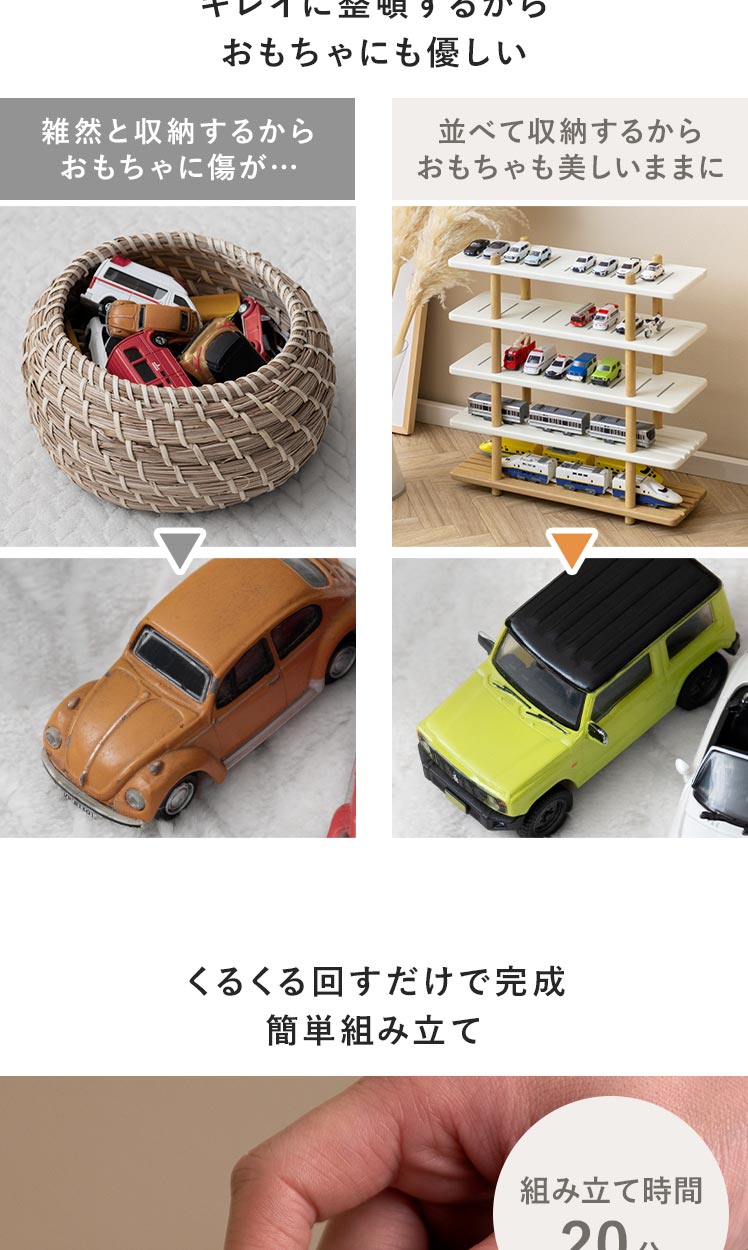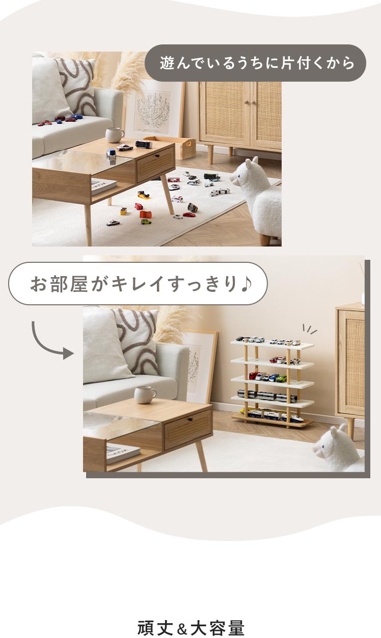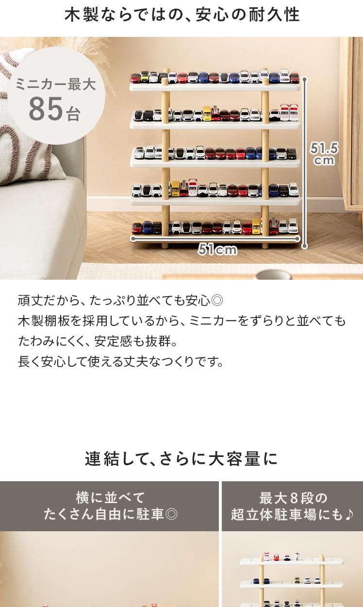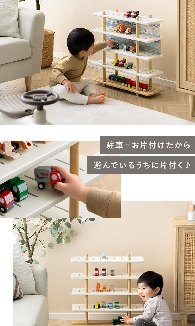 ミニカーラック 収納ラック 木製 おもちゃ収納 知育玩具 誕生日 プレゼント 2歳 3歳 4歳 ホワイト