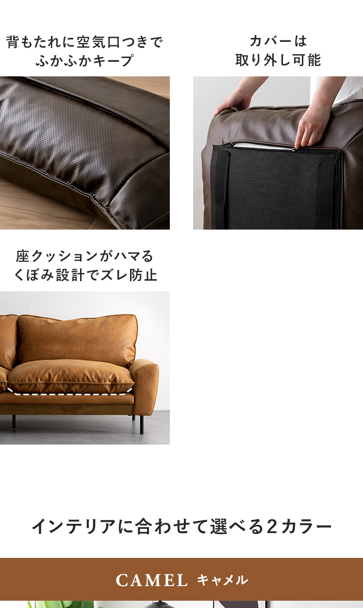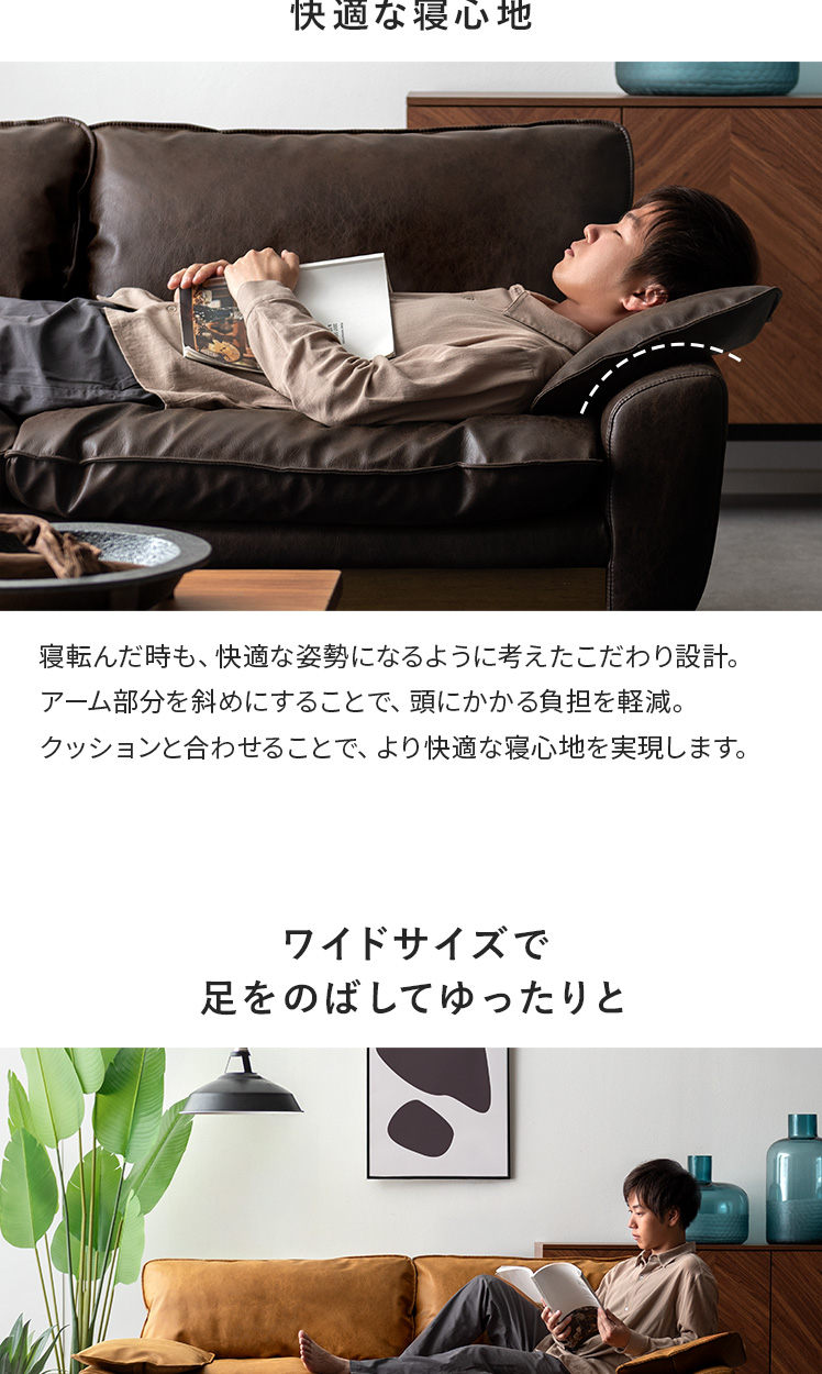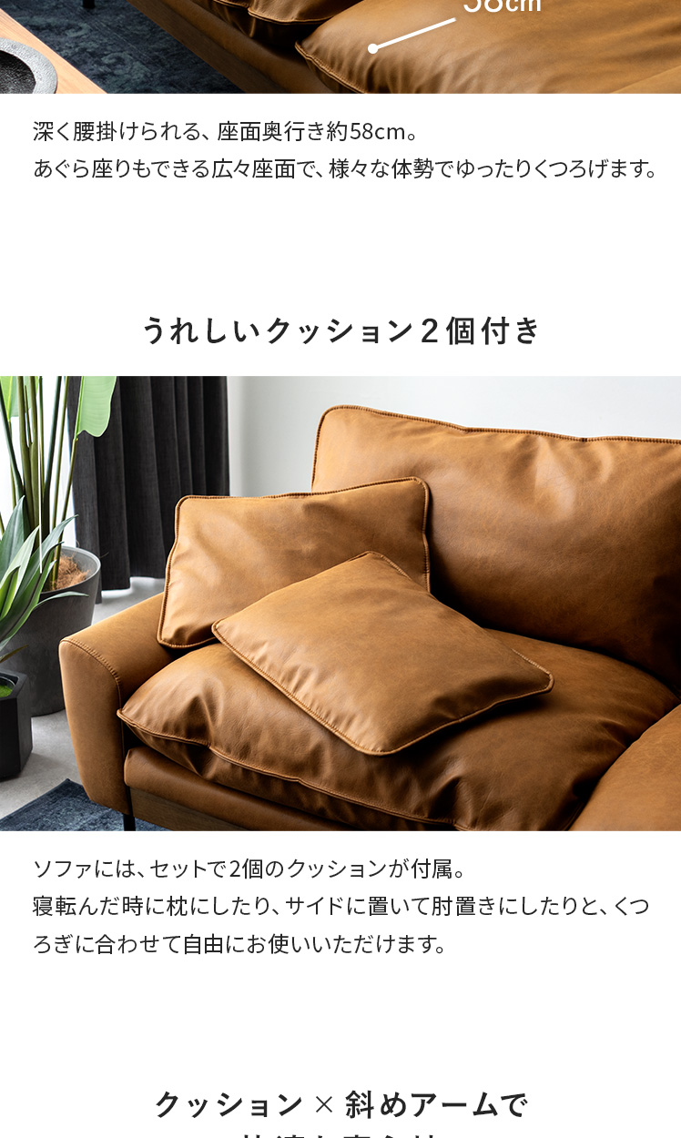 完成品 3人掛け レザー レザーファブリック アームソファ ローバック 広々座面 クッション付き おしゃれ かっこいい ヴィンテージ調 ミッドセンチュリー ナチュラル シンプル ブラウン キャメル【5%OFFクーポン対象|公式なら毎日お得】