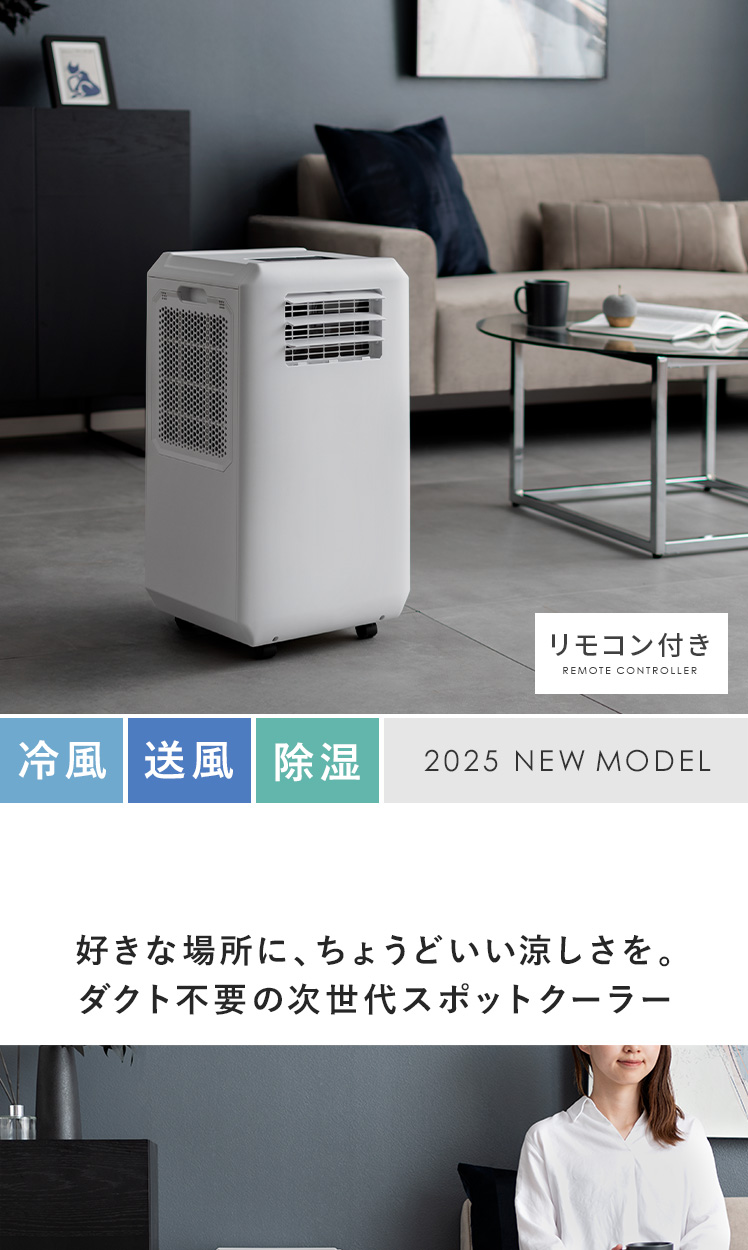 ◇ スポットクーラー ダクト不要 冷風機 移動式エアコン スポットエアコン 除湿機能付き リモコン付き タイマー機能 工事不要 ホワイト キャスター