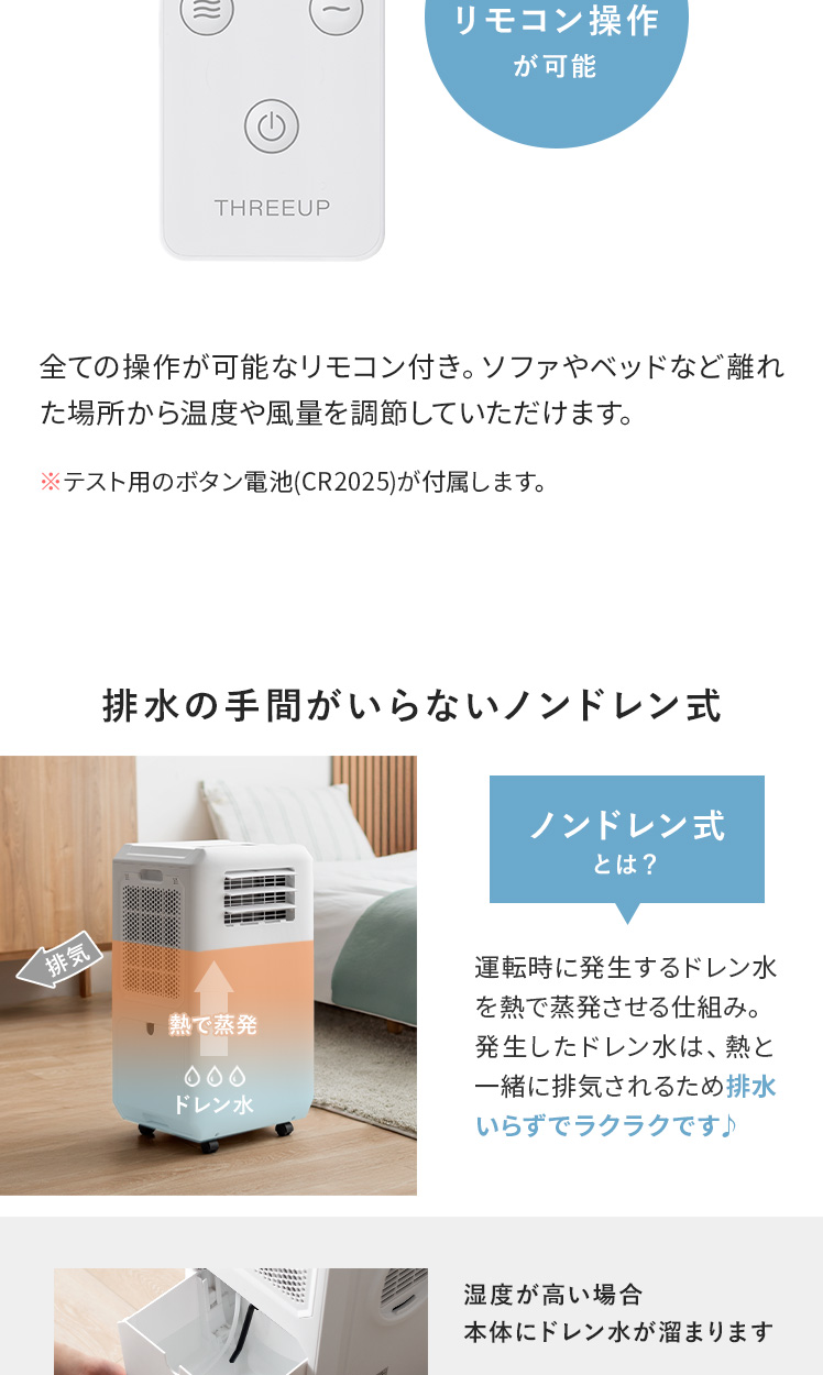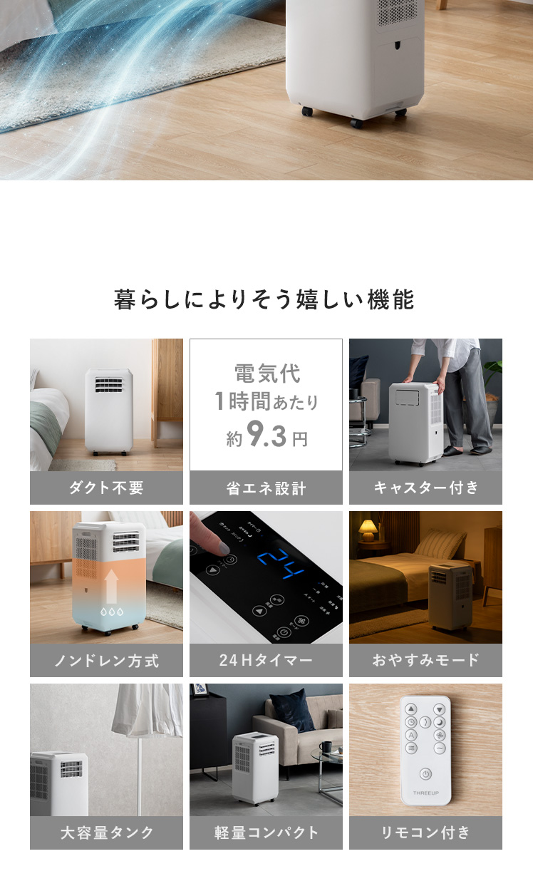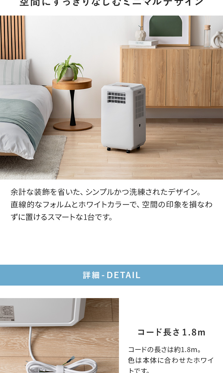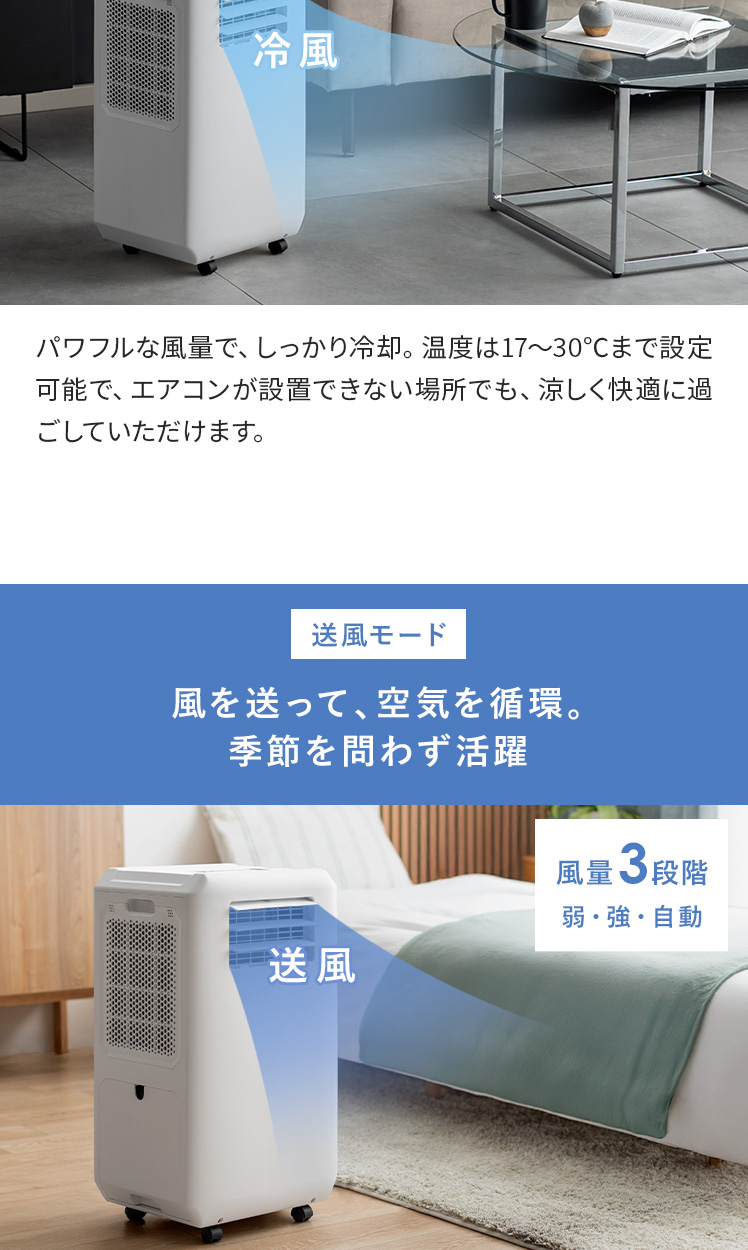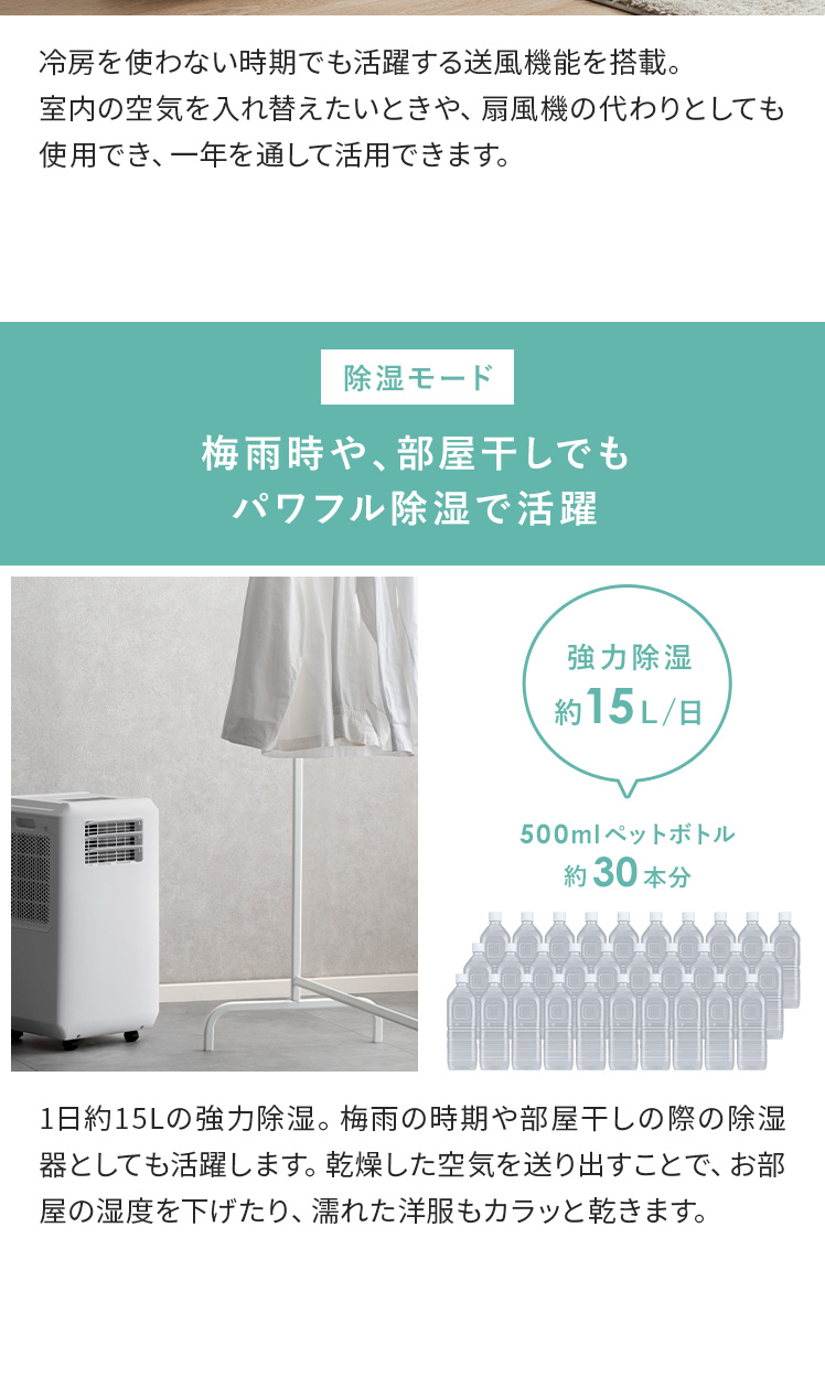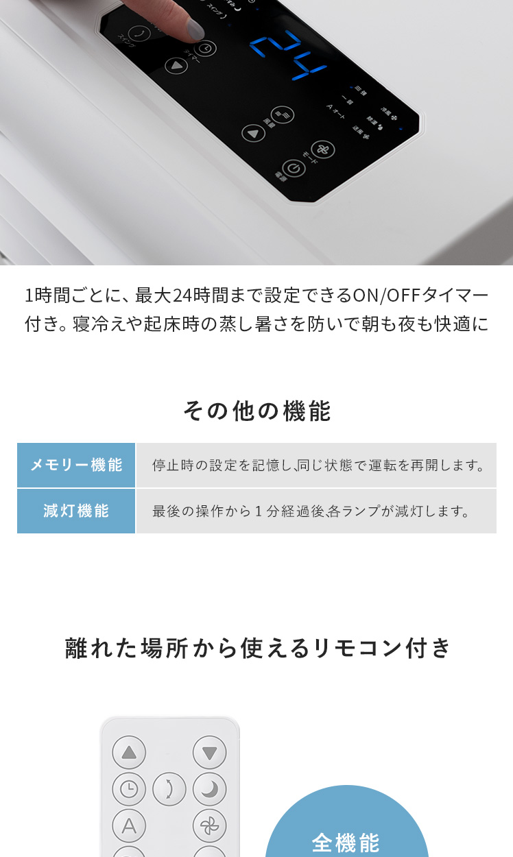 | 運転モード | 冷風、除湿(連続/30〜90%)、おやすみ、送風 |