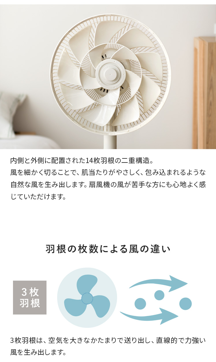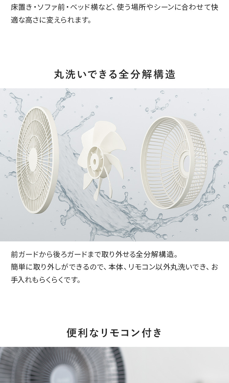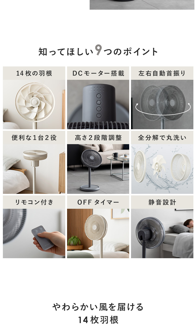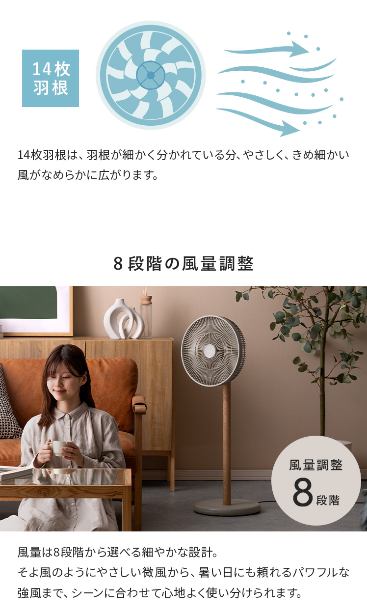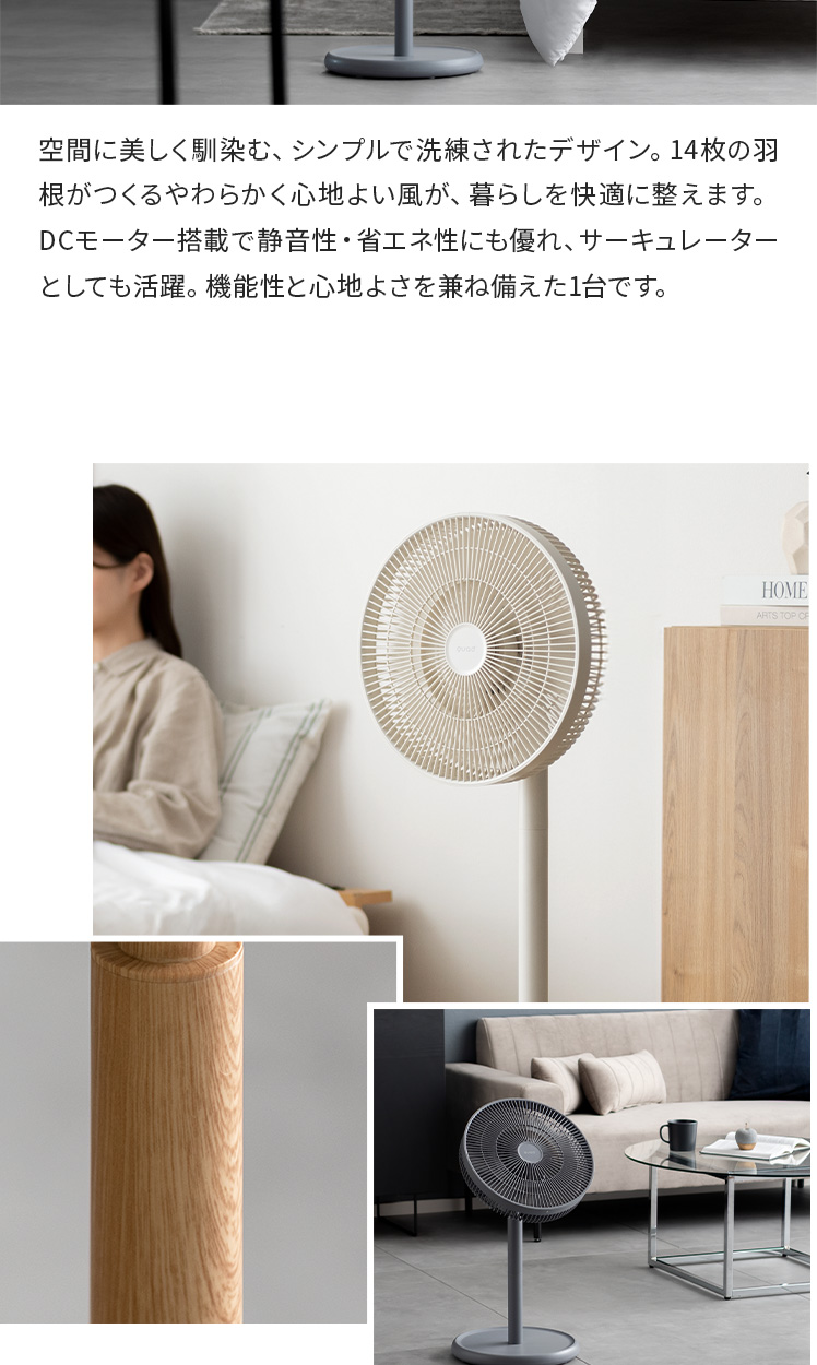 扇風機 おしゃれ DCモーター 風量8段階 14枚羽根 全分解 丸洗い リモコン付き OFFタイマー 静音設計 省エネ 左右首振り 真上 高さ2段階 サーキュレーター