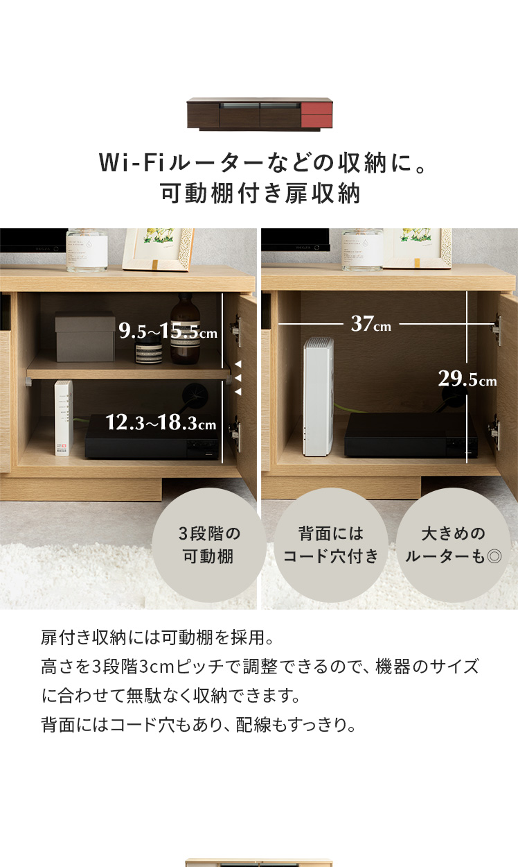 完成品 日本製 テレビ台 木製 テレビラック リビングボード 扉収納 引出し ルーター収納 可動棚 収納 スリット付き ワイドサイズ
