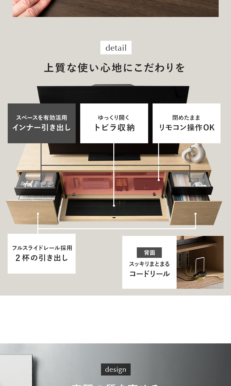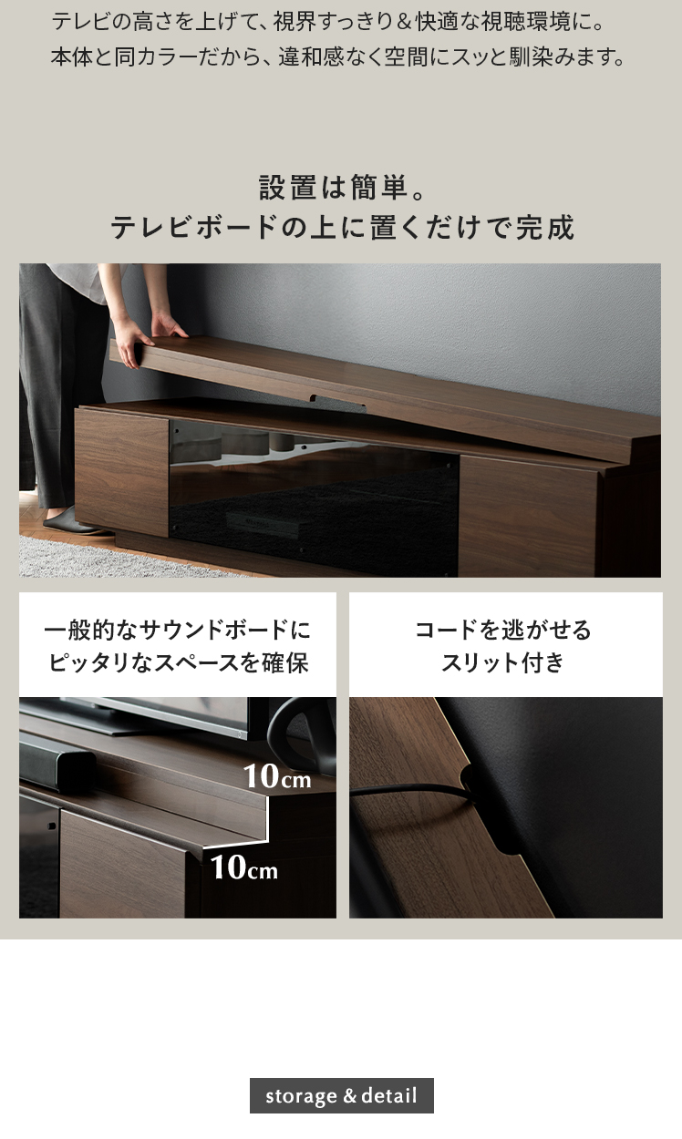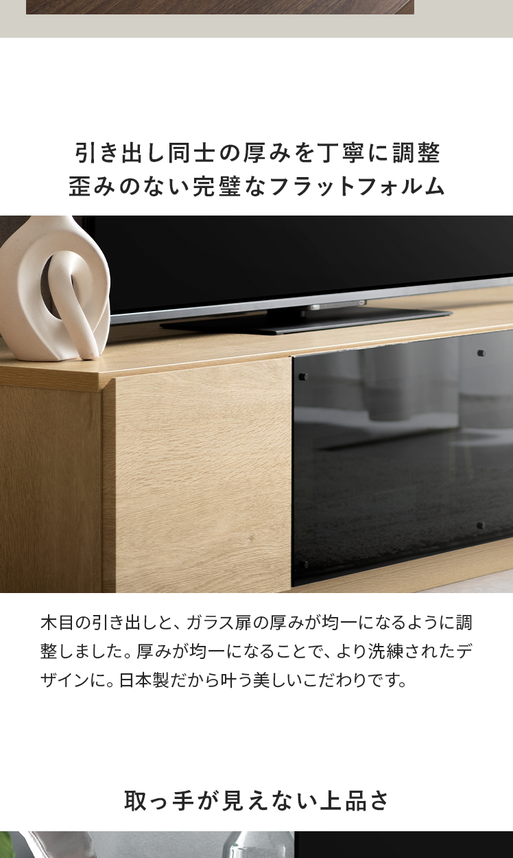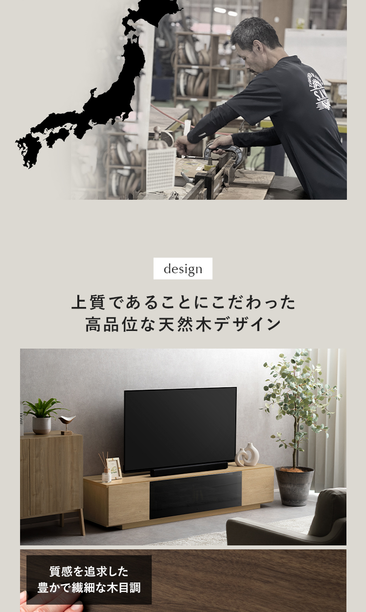 テレビボード Aalto forma〔アールト フォルマ〕 180cm幅 単品販売/洗練されたデザインと高い機能性を備えた日本製TVボード。まるで本物の天然木のような木目調が上質な空間を演出。本体と同素材・同色のサウンドバーボードや、多彩な収納も備え、見た目も使い心地もスマートに。