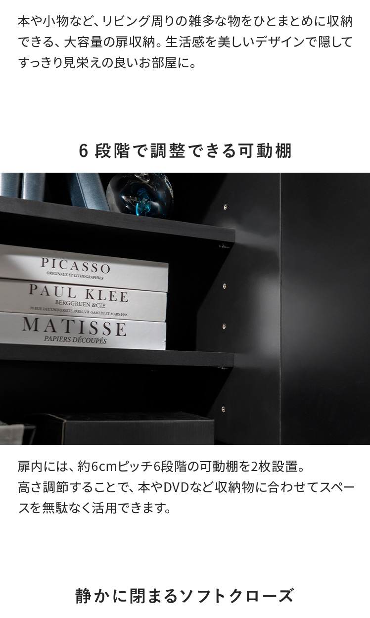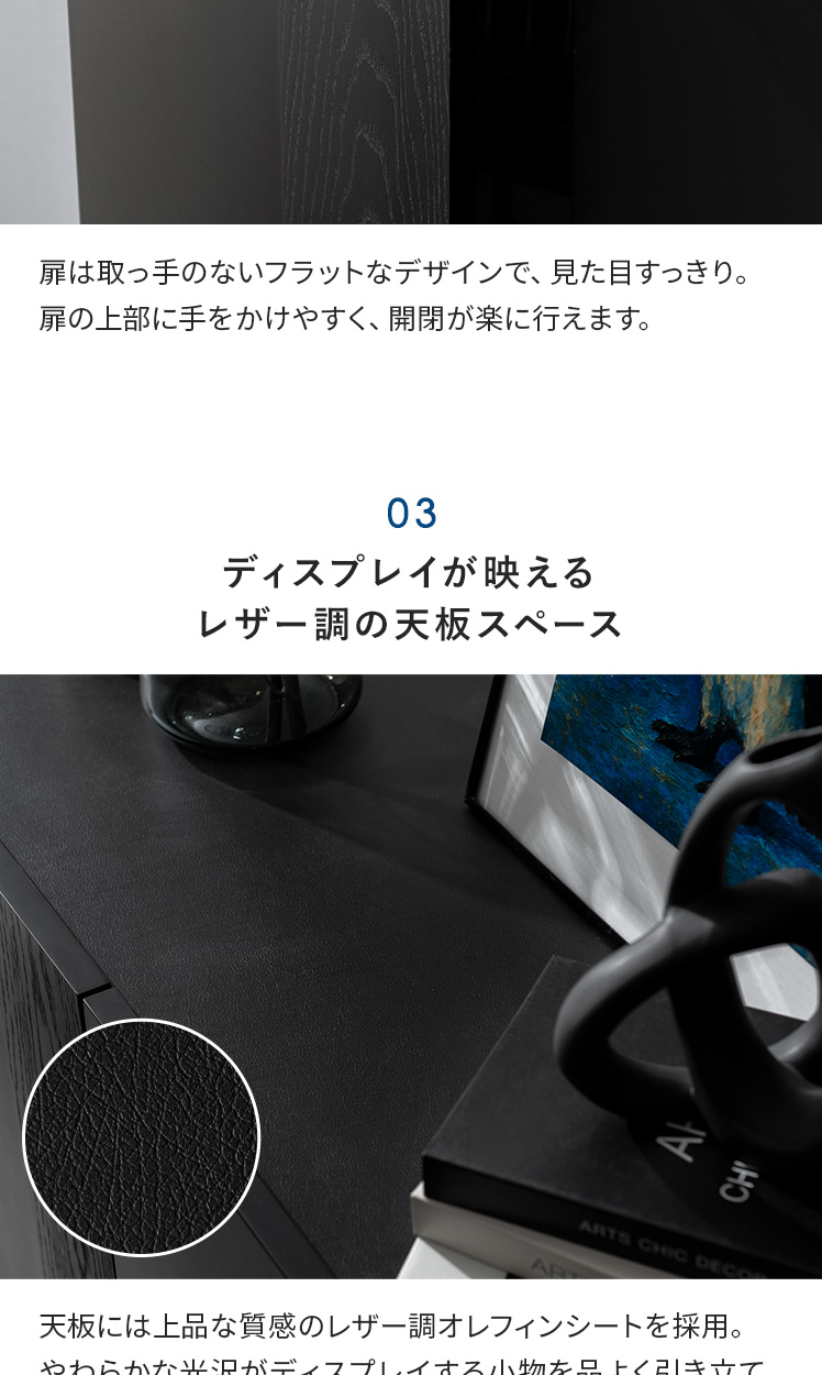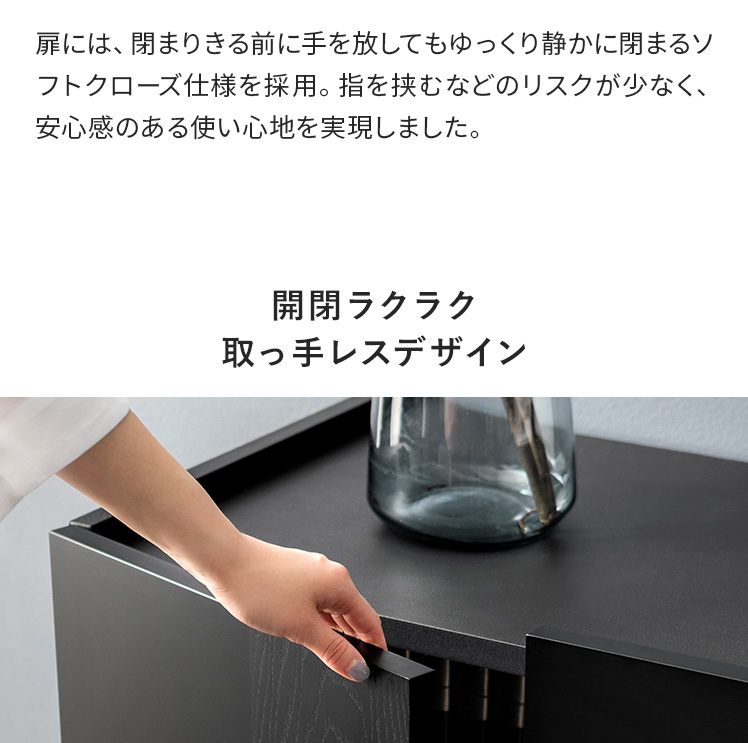 ラック キャビネット 取っ手レス ブラック