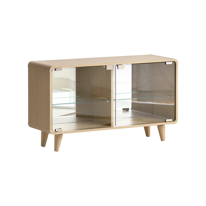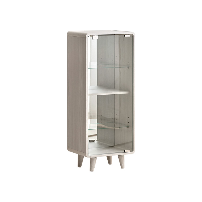 | 材質 | 本体/プリント紙化粧繊維板、棚板・扉部/強化ガラス、背面ミラー/ガラス、脚部/天然木 |