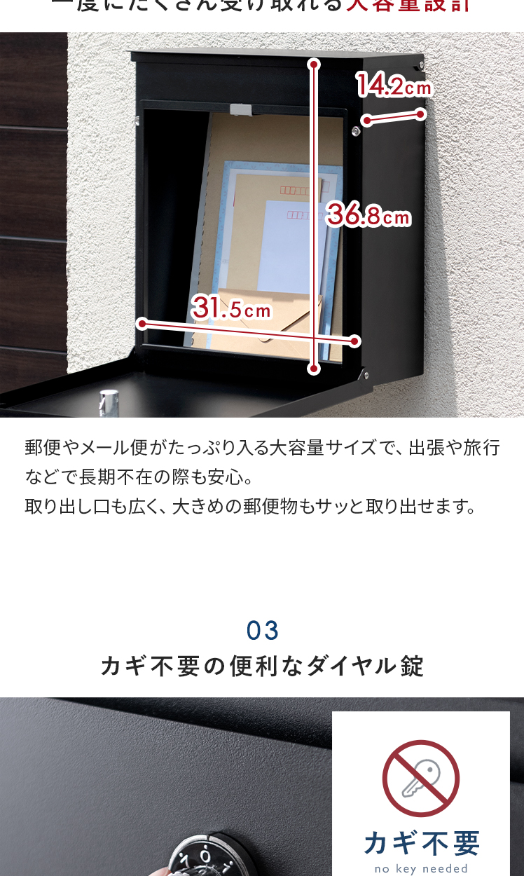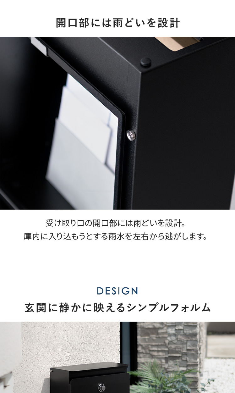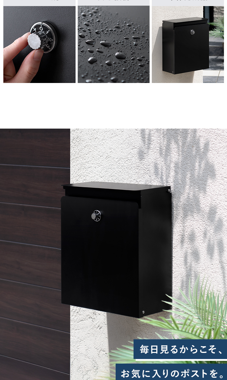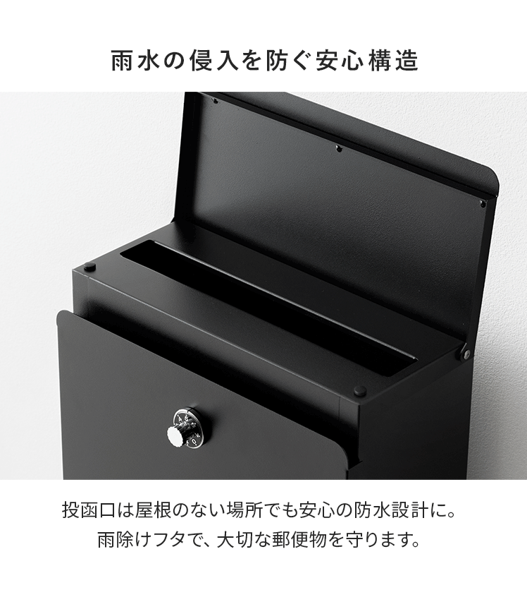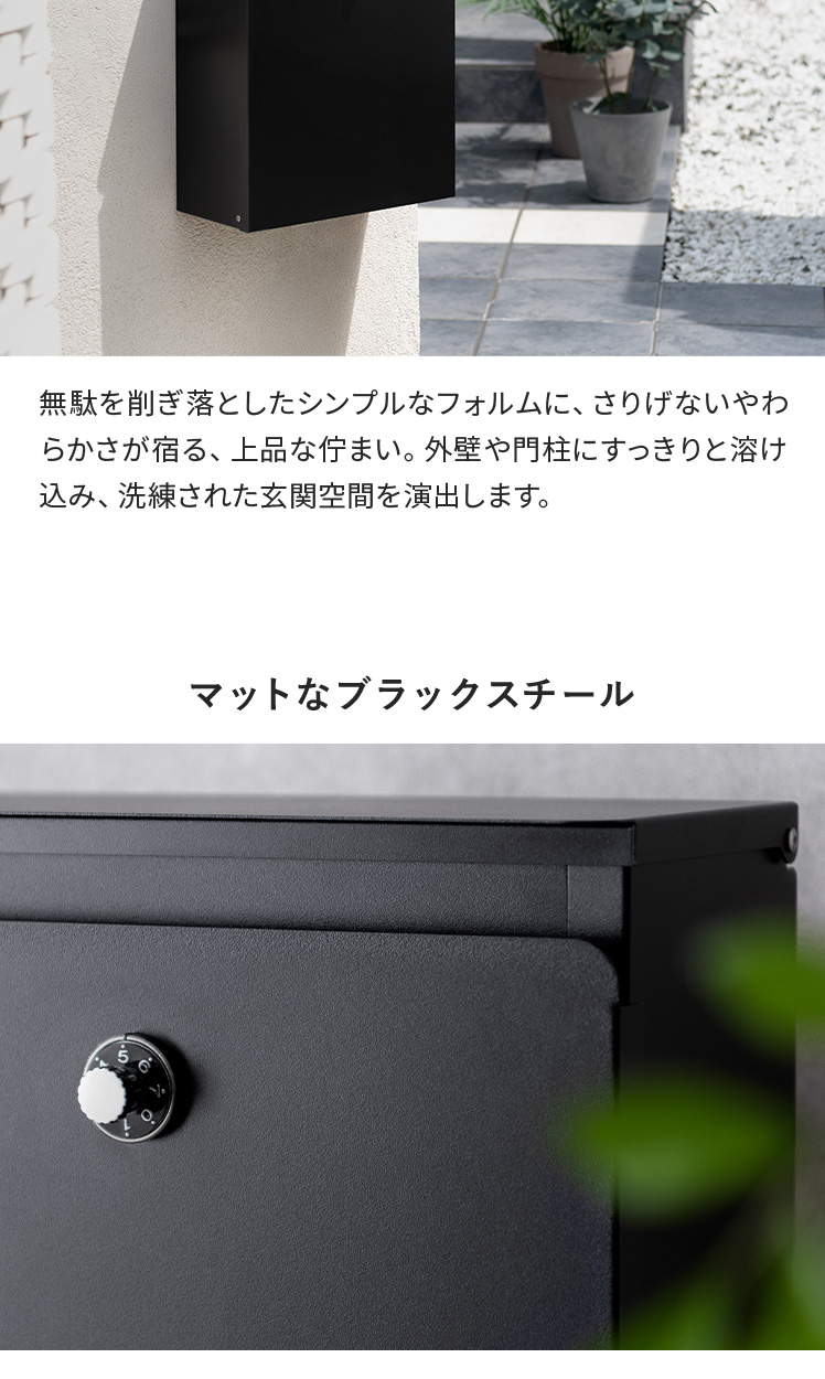 郵便ポスト 鍵付き 荷物 ダイヤル錠 収納 宅配 防滴構造 A4サイズ対応 手前開き モダン シンプル かわいい おしゃれ スチール ブラック【5%OFFクーポン対象|公式なら毎日お得】