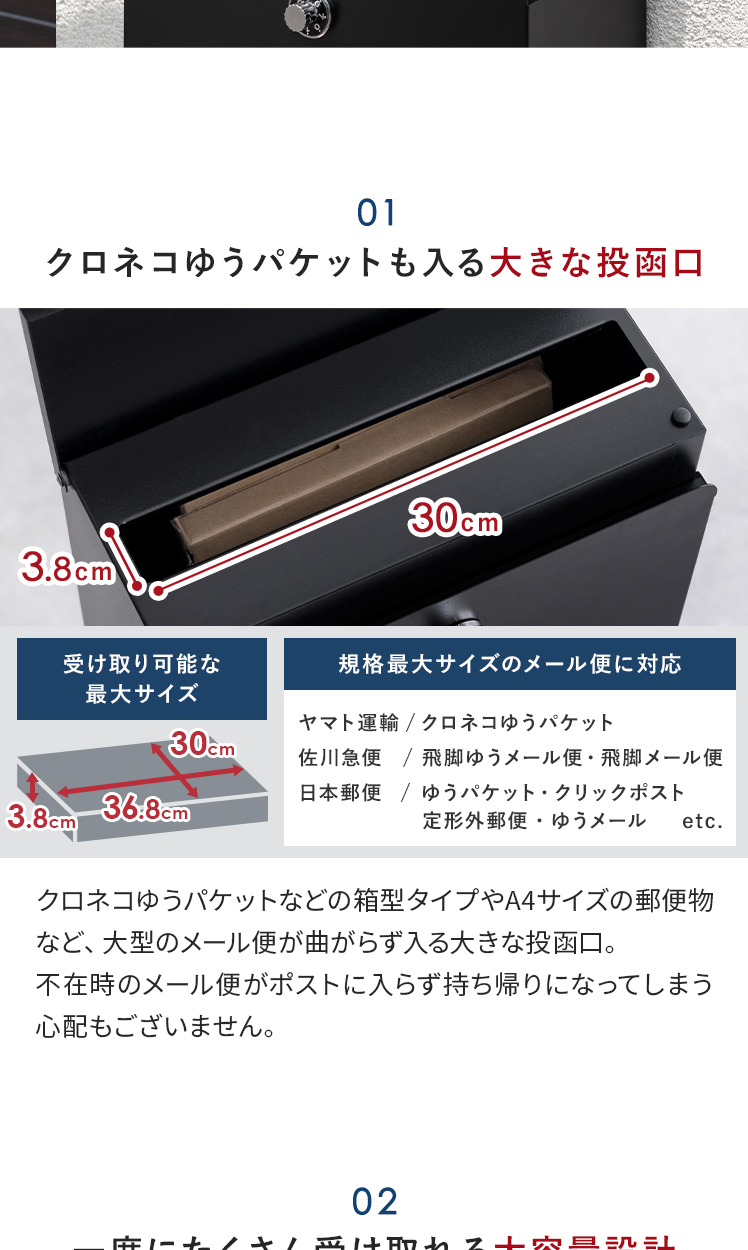 | 受け取り可能な荷物サイズ | 約幅30×奥行き36.8×高さ3.8cm |