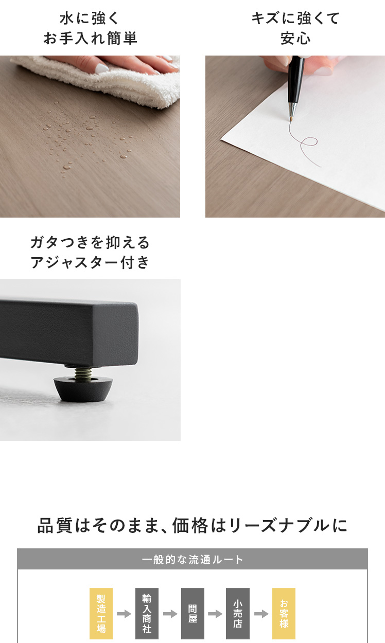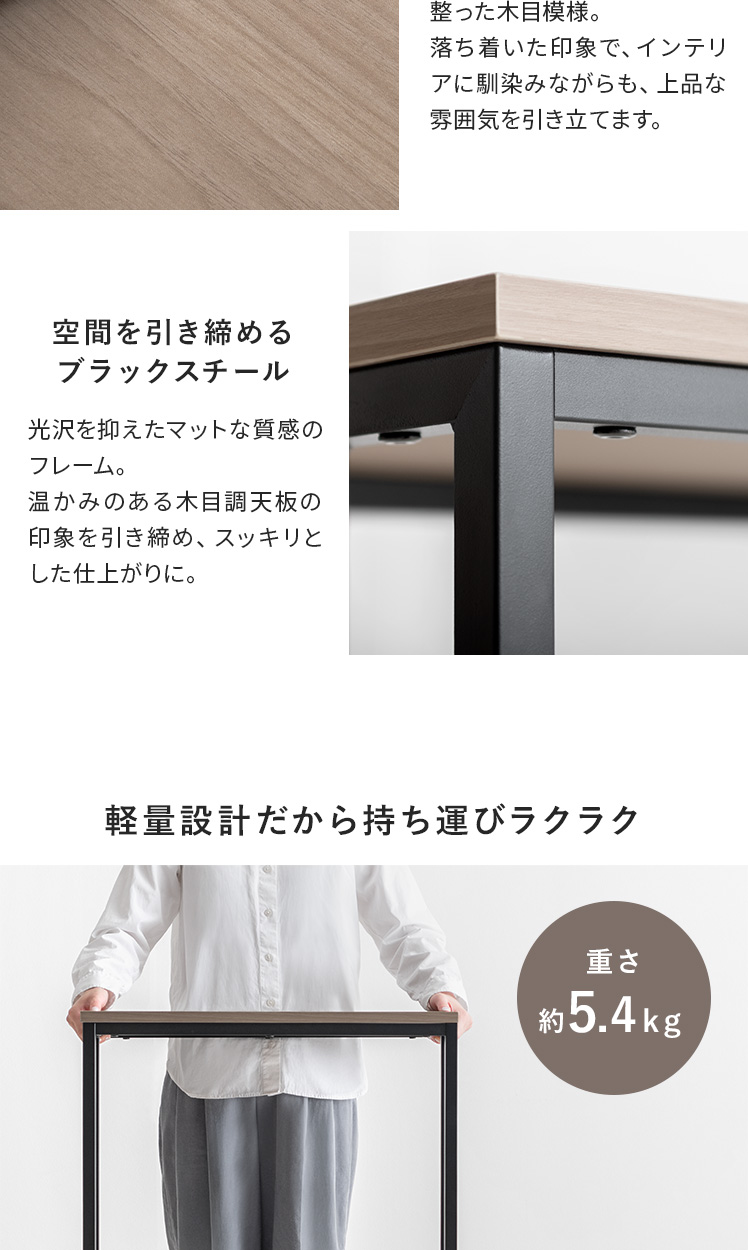 | 材質 | 合成樹脂化粧板(メラミン)、スチール(粉体塗装仕上げ) |