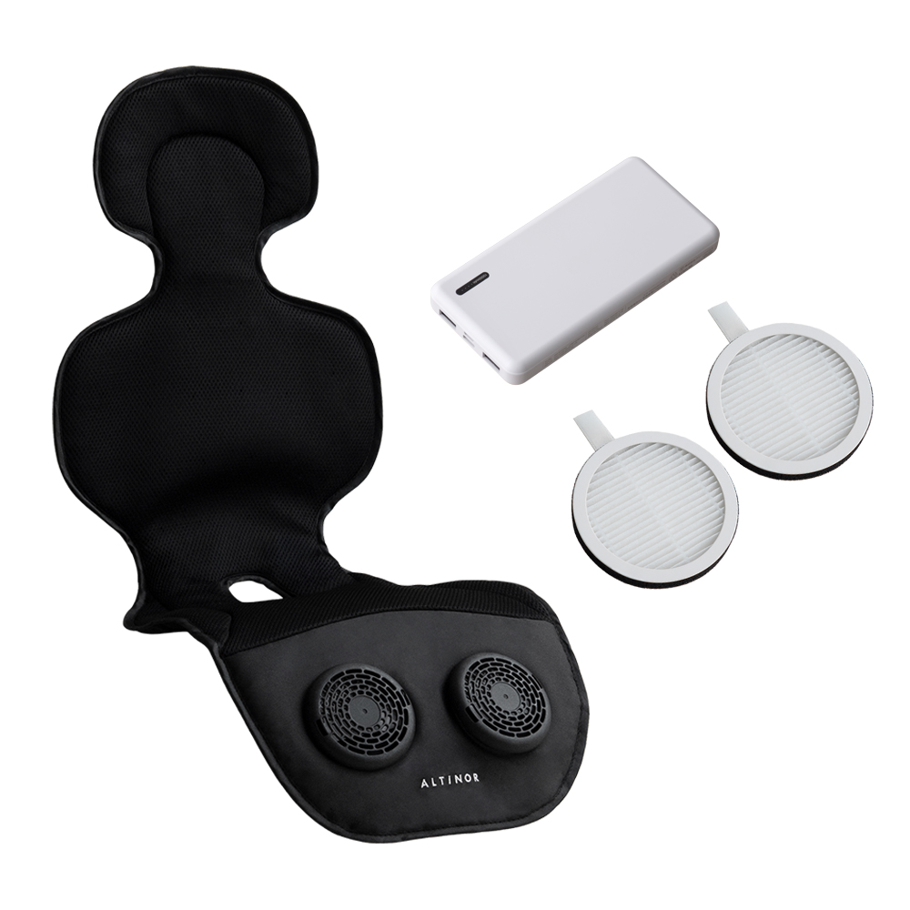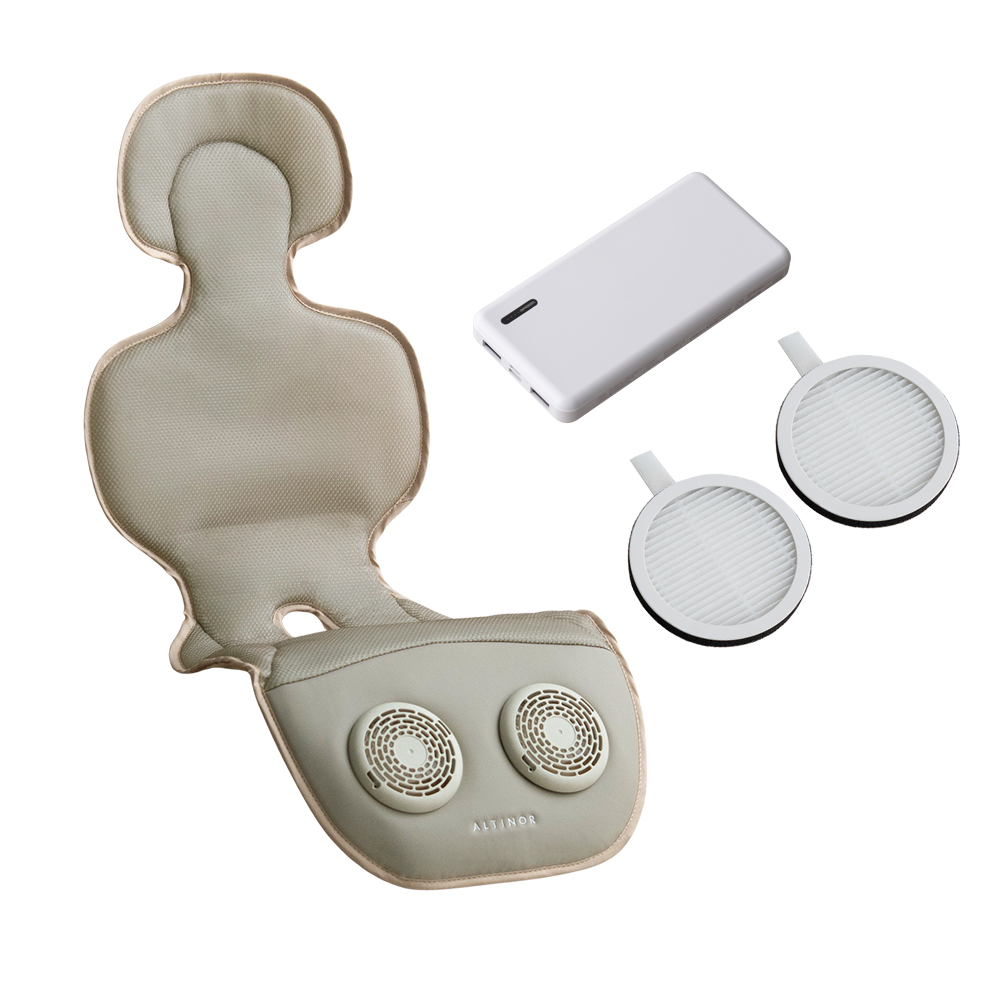 ALTINOR〔アルティノル〕 Wファン搭載ベビーシート本体・フィルター・バッテリーセット/お出かけをもっと快適に。赤ちゃんへのやさしさを一番に考えた機能と、日常にすっと溶け込むデザインで、毎日に、やさしく、心地よく馴染みます。心地よい風で思わずスヤスヤ、ママも嬉しいひと時を。
