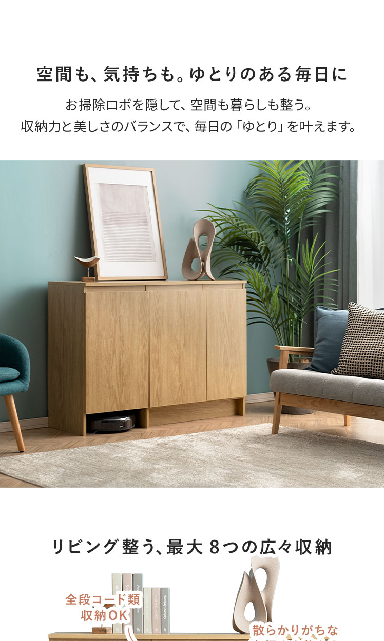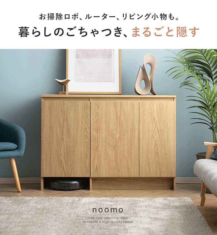 ロボット掃除機対応キャビネット noomo〔ノーモ〕/お掃除ロボを隠して、空間も暮らしも整う。収納力と美しさのバランスで、毎日の「ゆとり」を叶えます。