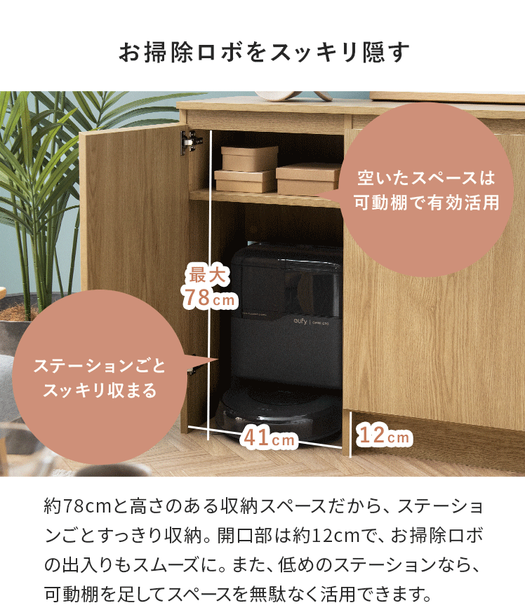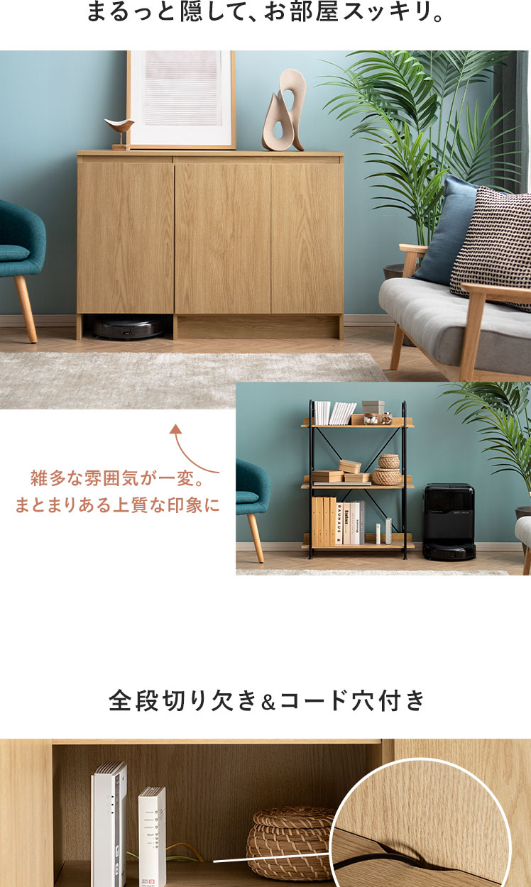 お掃除ロボット収納 可動棚 ウッドキャビネット 木製 シンプル ナチュラル おしゃれ 北欧 オーク調 リビング【5%OFFクーポン対象|公式なら毎日お得】