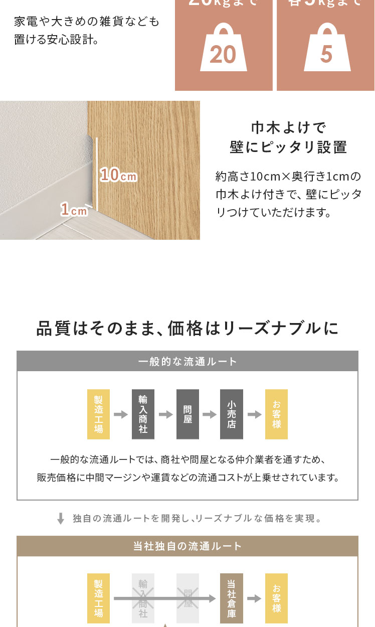 | 耐荷重 | 天板/約20kg、棚板/各約5kg |