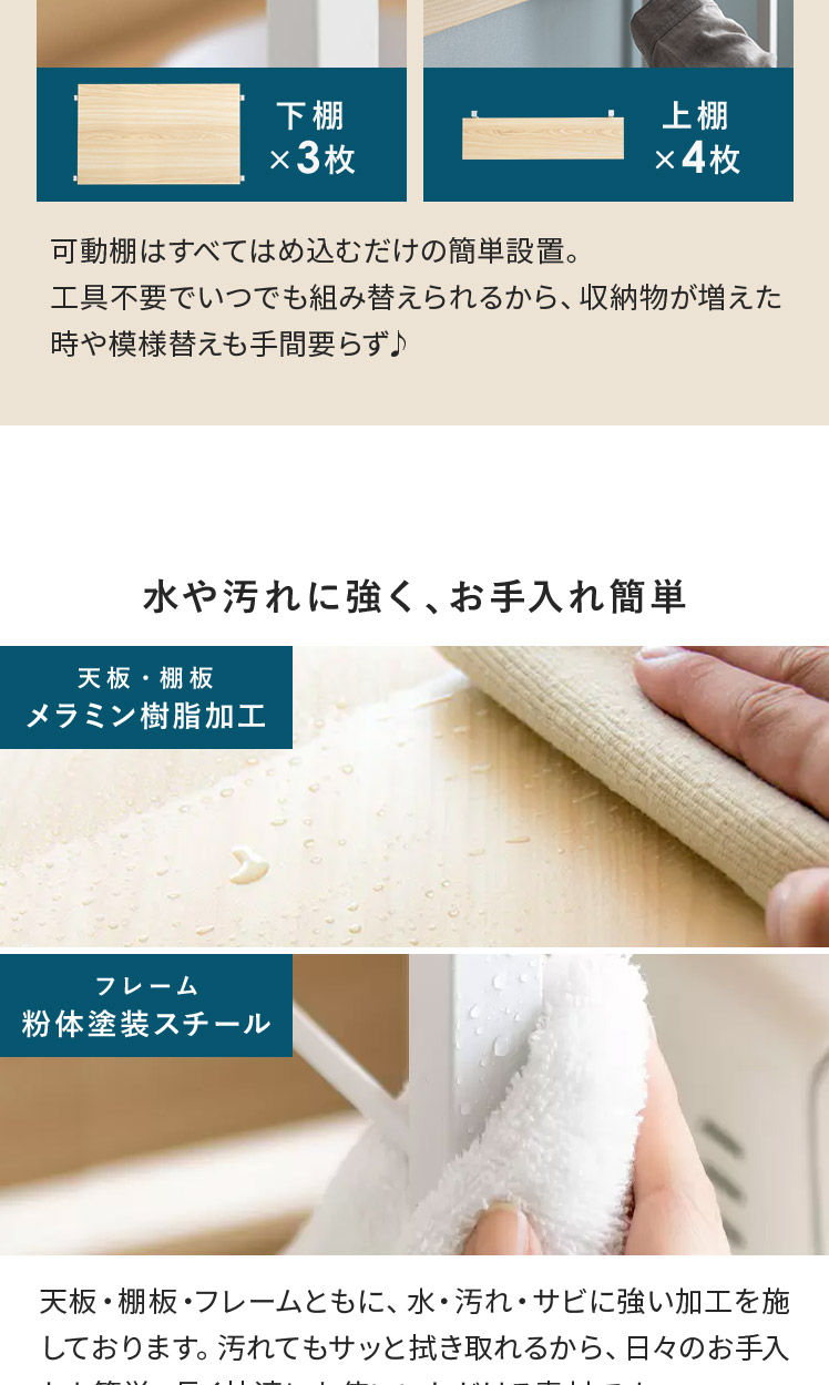 | 可動棚の枚数 | 下部棚/3枚、上部棚/4枚 |
