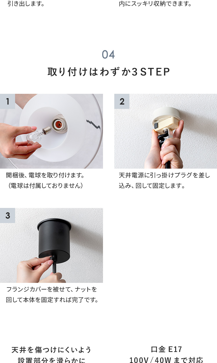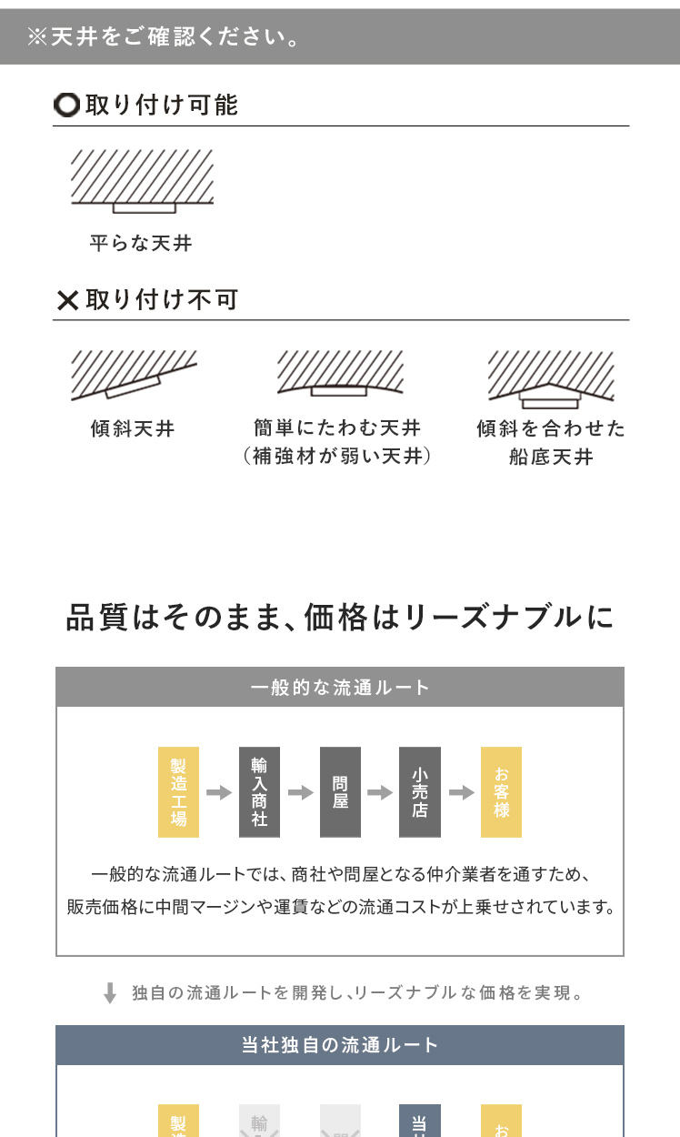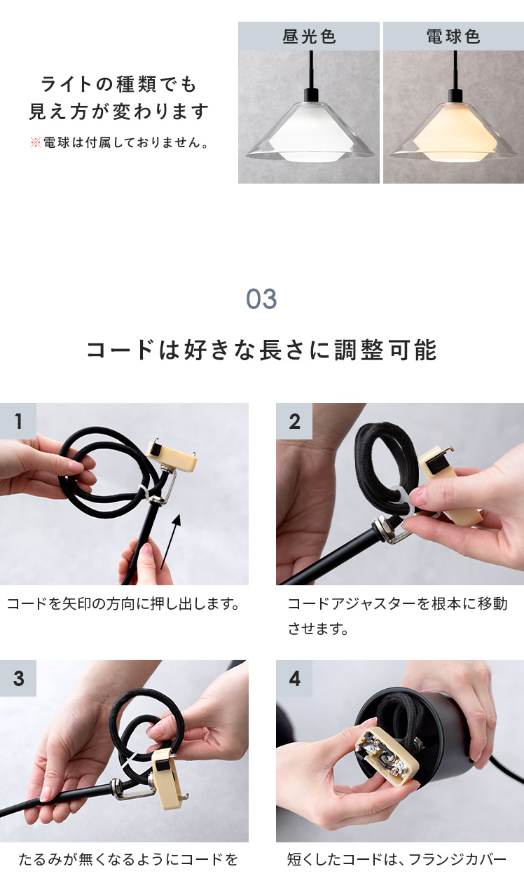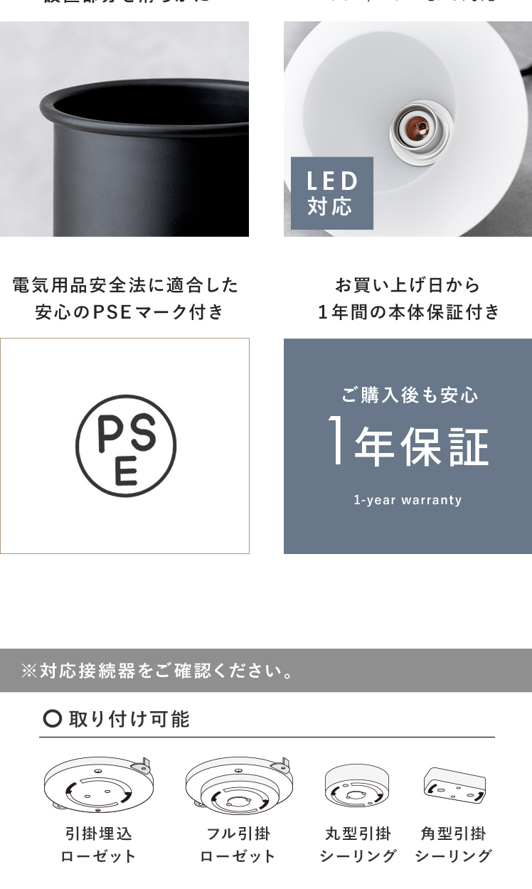 | 備考 | 完成品、LDE対応、コード長さ調整可能 ※若干の個体差により、表記サイズと多少の差異が生じる場合がございます。 ※こちらの商品は単体販売となっております。 ※電球は付属しておりません。 ※照明本体に点灯・消灯スイッチがないタイプとなっております。設置をご検討頂いておりますお部屋の壁に、天井照明用スイッチがあるかご確認の程お願いいたします。 |