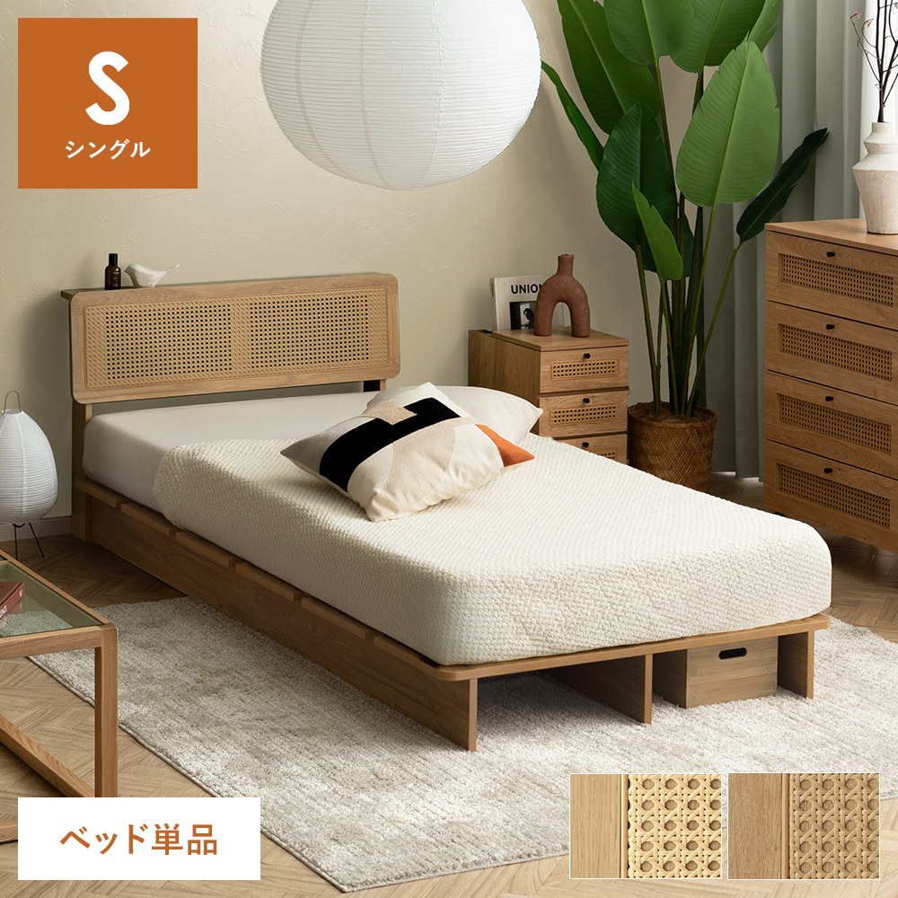 【S】[幅約110] [シングルマットレスセット] ヘッドボード付きラタン調すのこベッド Lotta〔ロッタ〕 マットレスセット
