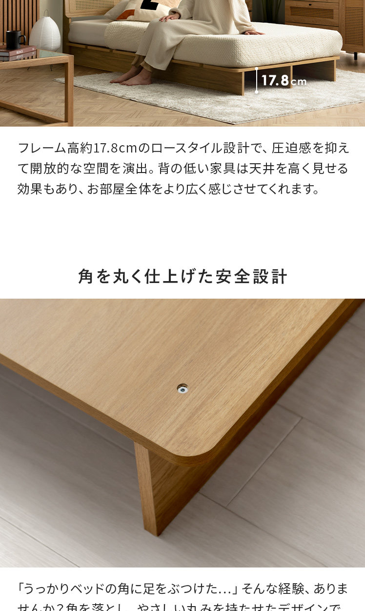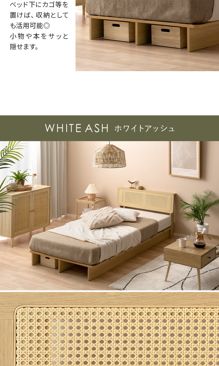 シングル すのこベッド 木製 北欧 宮棚 モダン シンプル おしゃれ ローベッド ラタン調【5%OFFクーポン対象|公式なら毎日お得】