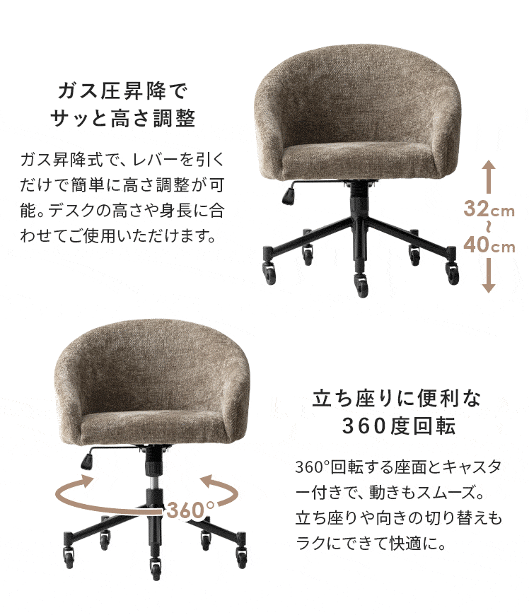 椅子 スチールチェア ファブリック スチールチェア 回転 昇降 キャスター付き パーソナルチェア ブラウン【5%OFFクーポン対象|公式なら毎日お得】