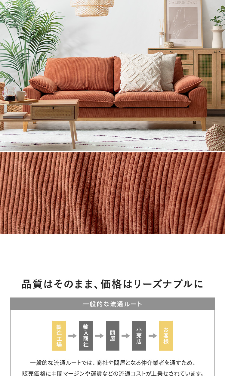 [幅197] コーデュロイ ソファ Signe〔シグネ〕