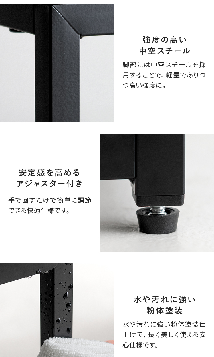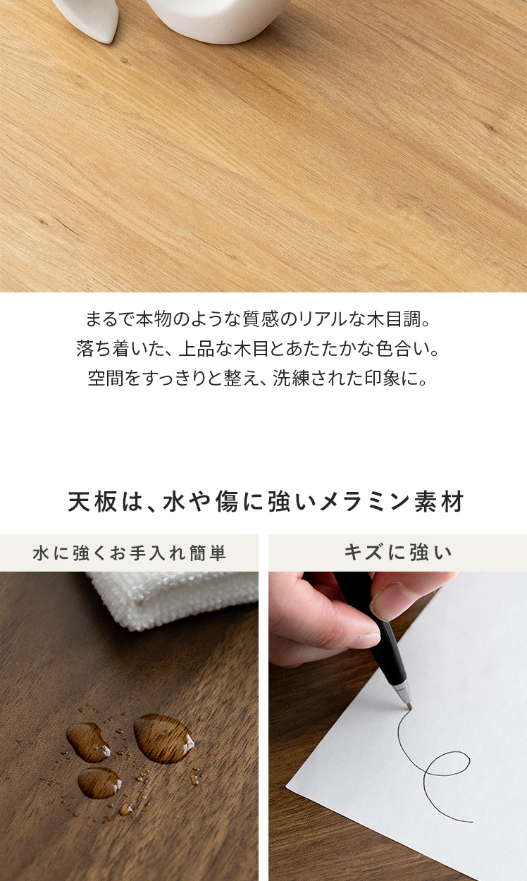 | 材質 | 合成樹脂化粧板(メラミン)、スチール(粉体塗装) |