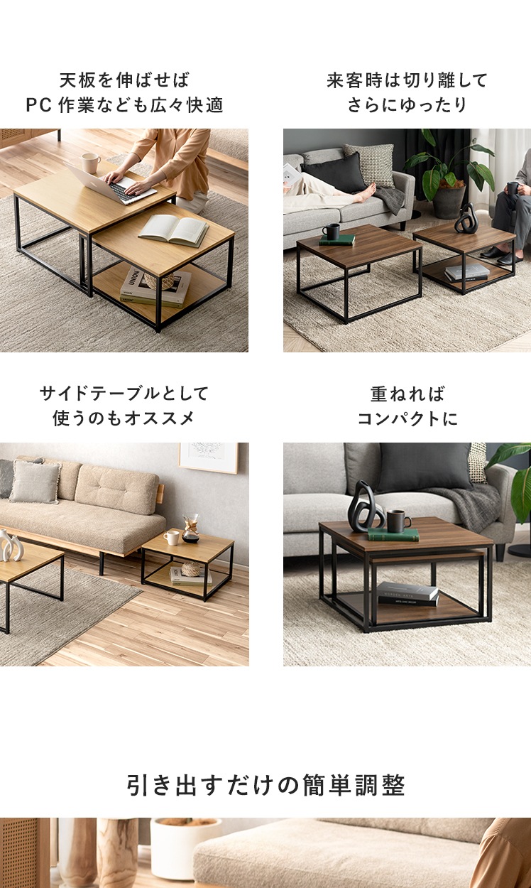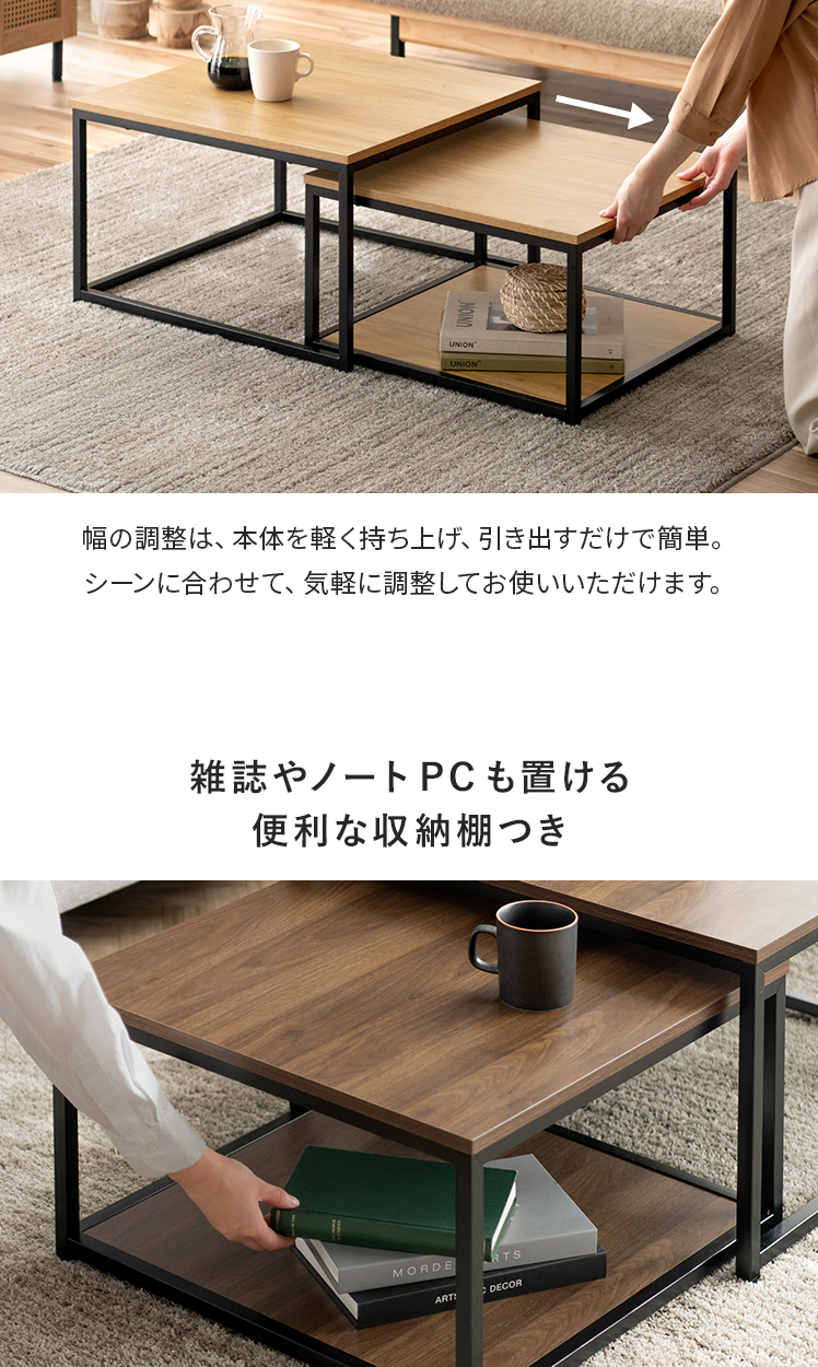 テーブル2個セット ローテーブル センターテーブル おしゃれ シンプル 伸縮テーブル リビングテーブル コンパクト 省スペース ブラウン ナチュラル【5%OFFクーポン対象|公式なら毎日お得】