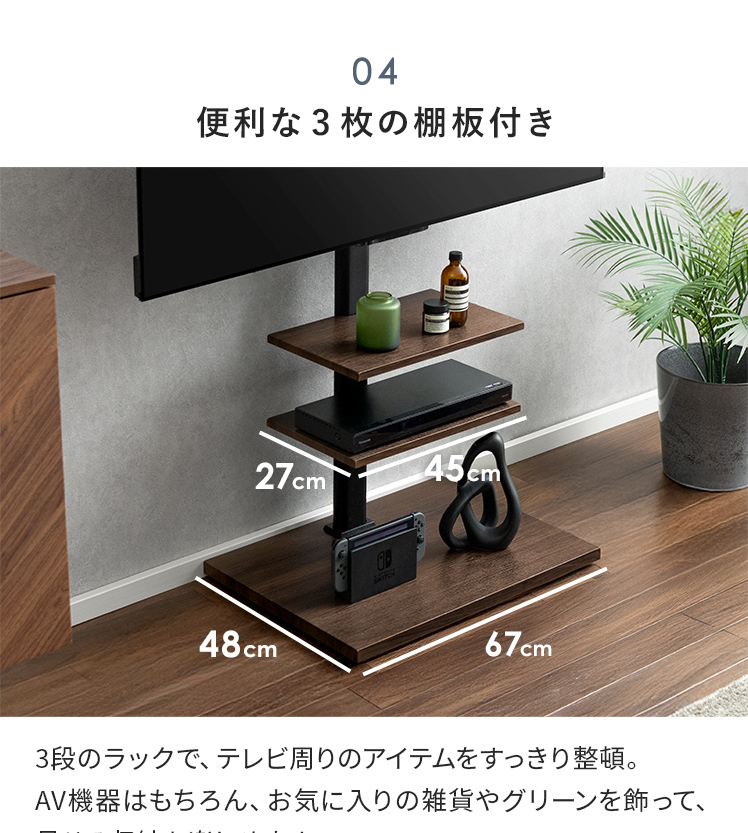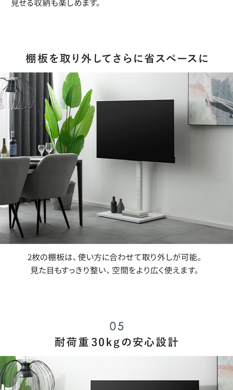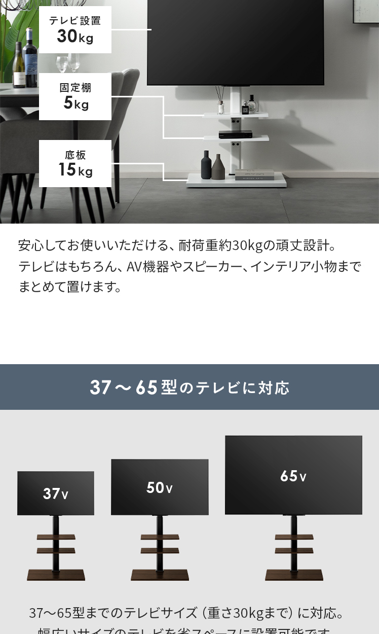 | 耐荷重 | テレビ設置部/約30kg、固定棚/約5kg、底板/約15kg |